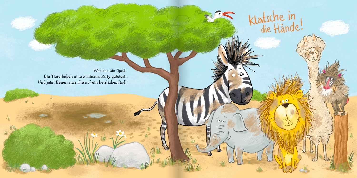 Wilde Schlammparty bei den Tieren. Danach müssen sich alle die Haare waschen - OH NEIN! In diesem lustigen Mitmachbuch helfen die Allerkleinsten durch Klopfen, Rufen, Schütteln und Pusten mit, dass sich Elefant, Zebra & Co. in die Badewanne trauen. Am Ende sind alle Tiere wieder sauber und freuen sich, weil das Haarewaschen viel mehr Spaß gemacht hat als gedacht. Ein tierisch witziges Bilderbuch für kleine Bademuffel ab 2 Jahren - ganz ohne Ziepen und Tränen!
