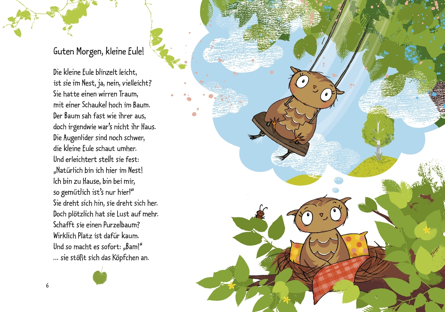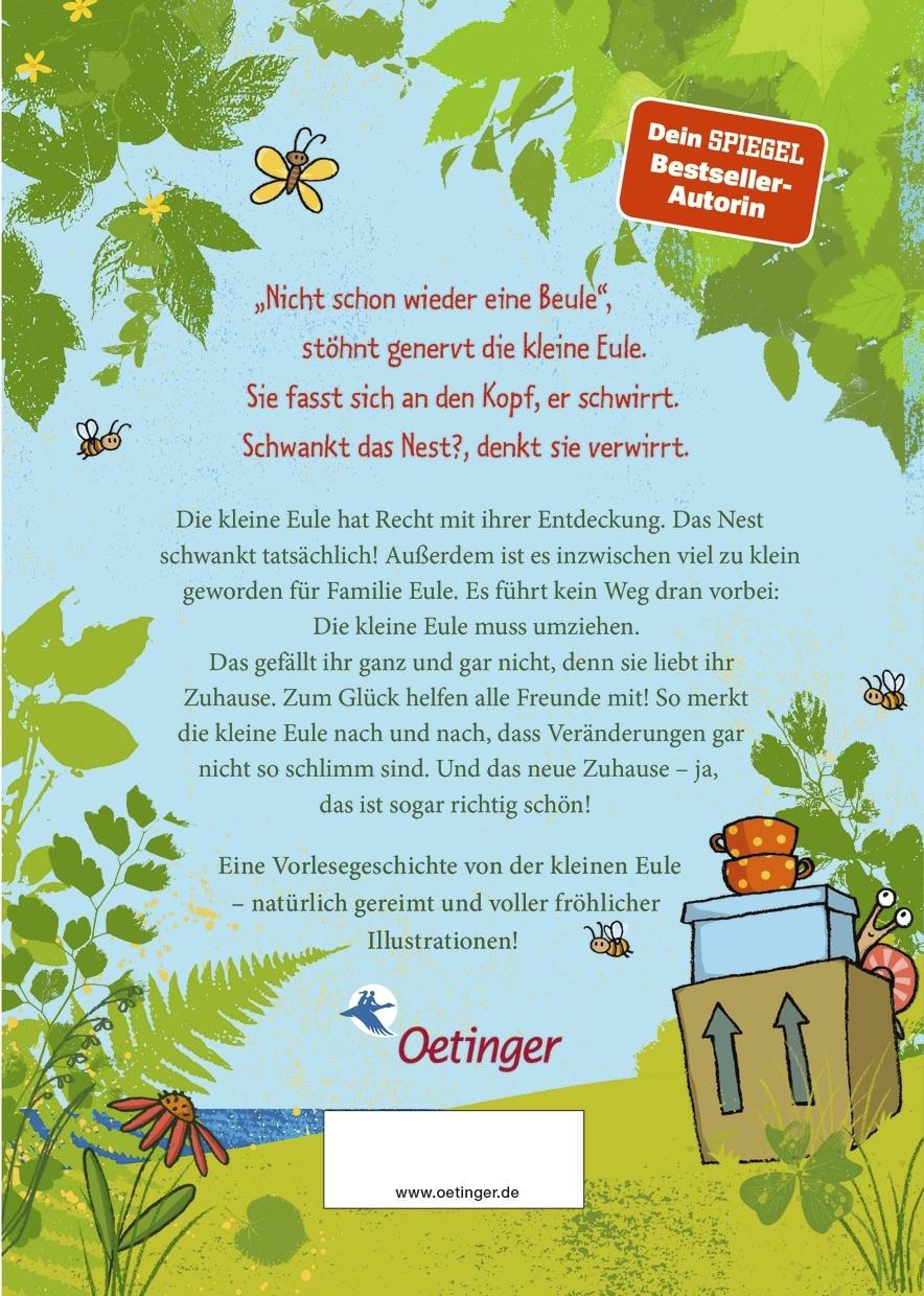 Eines Morgens wacht die kleine Eule auf und bemerkt, dass ihr Nest ganz schön klein geworden ist. Außerdem schwankt der Baum so komisch. Ziemlich schnell wird Familie Eule klar, dass sie umziehen muss. Der kleinen Eule gefällt das ganz und gar nicht, liebt sie doch ihr Nestchen mit der Haselmaus als Nachbarin. Aber der Baum ist einfach schon zu morsch und kein sicherer Ort mehr für die Eule. Zum Glück verrät ihr die Haselmaus ein Geheimnis: Da wo deine Lieben sind, wirst auch du dich wohlfühlen. Mit diesem Wissen und der Hilfe von ihren Freunden fällt der kleinen Eule der Umzug viel leichter. Als sie dann auch noch alle Freunde im neuen Nest besuchen, merkt die kleine Eule: Umziehen ist eigentlich doch was Tolles!
