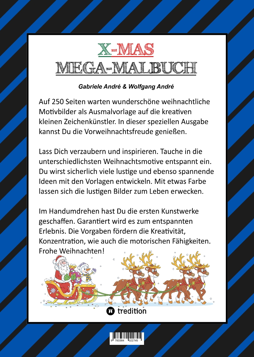 X-MAS MEGA MALBUCH - 250 WEIHNACHTLICHE MOTIVE - WEIHNACHTSMANN - TIERE - SCHNEEMANN - CHRISTBAUM - SCHLITTEN