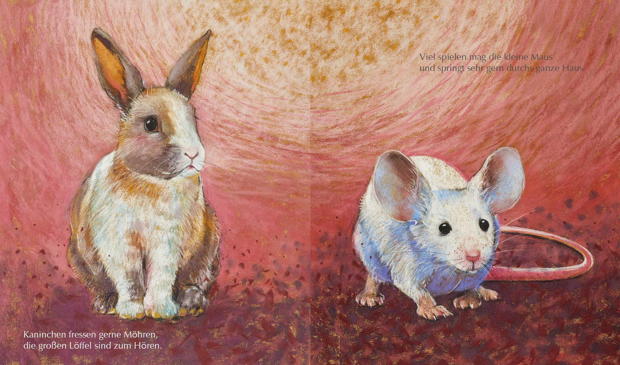 Die Natur entdecken mit Pastell-Bildern, die Haustiere lebendig werden lassenEin süßes Kätzchen, die freche Maus oder das fleißige Huhn: In diesem Tierbuch können Kinder ihre Lieblingstiere erleben und benennen. Die niederländische Malerin Loes Botman kombiniert ihre einzigartigen, detailreichen Pastellzeichnungen mit lustigen Reimen, die schon kleinen Kindern ab 2 Jahren Spaß machen.- Robust für kleine Hände: Stabiles Pappbilderbuch über Haustiere für Kinder ab 2 Jahren- Nostalgisch-schön: Tierbuch mit dem ganz besonderen Charme der Loes Botman-Bilder- Spielerische Sprachförderung: Kinderbuch mit Reimen zum Zuhören und Mitsprechen- Hamster, Hund und Co.: Welches Kind entdeckt sein eigenes Lieblingstier?- Jede Zeichnung ein Kunstwerk: Loes Botman fängt tierische Charaktere einEs grunzt, schnurrt und trällert: Was ist typisch für welches Tier?Das Meerschweinchen ist gern zu zweit, der Goldfisch lässt sich schnell mit Futter locken und die Schildkröte sieht entspannt in die Ferne: Loes Botman verbindet ihre Tierzeichnungen mit Reimen, die Interessantes über unsere Haustiere erzählen. Ihre großartigen Pastellzeichnungen laden Kleinkinder immer wieder zum Betrachten und Staunen ein. Und wer findet Kinderreime wie "Kaninchen fressen gerne Möhren, die großen Löffel sind zum Hören" nicht amüsant und einprägsam? Ein Bilderbuch über Haustiere zum immer wieder durchblättern und vorlesen lassen - mit Tierzeichnungen, die Groß und Klein begeistern!