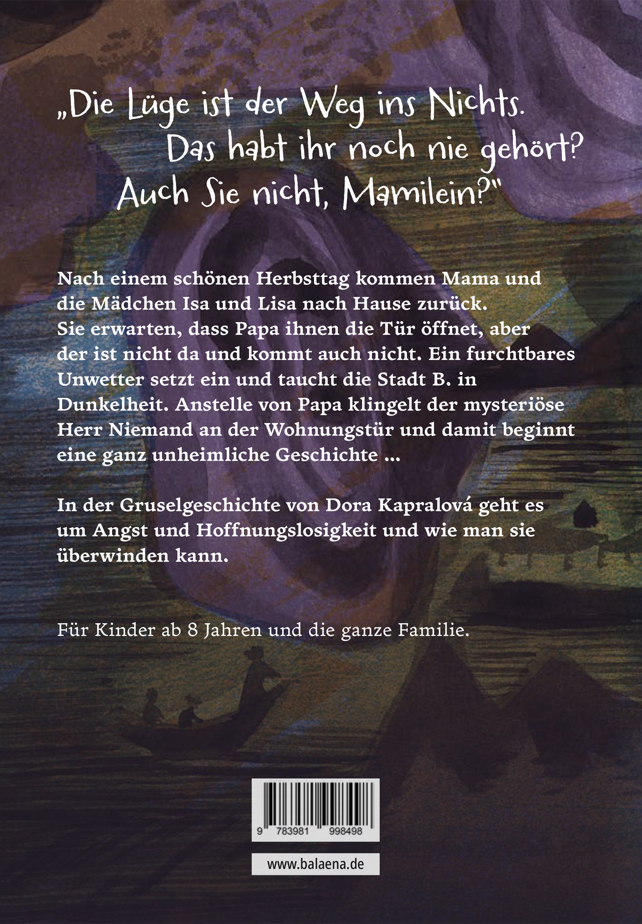 Dora Kaprálová geboren 1975 in Brno/Brünn, studierte Dramaturgie und Szenaristik an der Janáček Arts Academy (JAMU). Sie lebt mit ihren beiden Töchtern seit 2007 in Berlin und blickt mit der Distanz der freiwilligen Emigrantin sowohl auf ihre Heimat als auch auf die deutsche Metropole. Für Lesungen und Stipendienaufenthalte ist sie in ganz Mitteleuropa unterwegs. Zuletzt war sie Gast des Niederösterreichischen Literaturhauses in Krems. Nach ihrem Debut „Winterbuch über die Liebe“ (Archa 2014) und dem Tagebuch-Roman „Berliner Notizbuch“ (Druhé město 2016) hat sie sich mit dem Erzählband „Inseln“, der in Tschechien viele positive Kritiken bekam, endgültig als Literatin etabliert. "Herr Niemand" ist ihr erstes Kinderbuch, doch sicher nicht ihr letztes. Es war auf der Auswahlliste des Tschechischen Jugendbuchpreises Zlatá Stuha 2022. Schon ihre journalistischen Texte zu Themen wie Migration und Integration und auch ihre Radiofeatures mit Art-Sound-Experimenten wurden in Tschechien vielfach ausgezeichnet. Sie schreibt Drehbücher für Filme, ist als Co-Regisseurin tätig und gibt Workshops in Kreativem Schreiben. Außerdem verfasst sie regelmäßig Kolumnen sowie Radiobeiträge und konzipiert und moderiert literarische Veranstaltungen z.B. zum Werk Milena Jesenskás. Ihre Bücher und Texte wurden bereits in mehrere Sprachen übersetzt, darunter ins Deutsche, Ungarische, Englische, Polnische, Kroatische und Ukrainische.