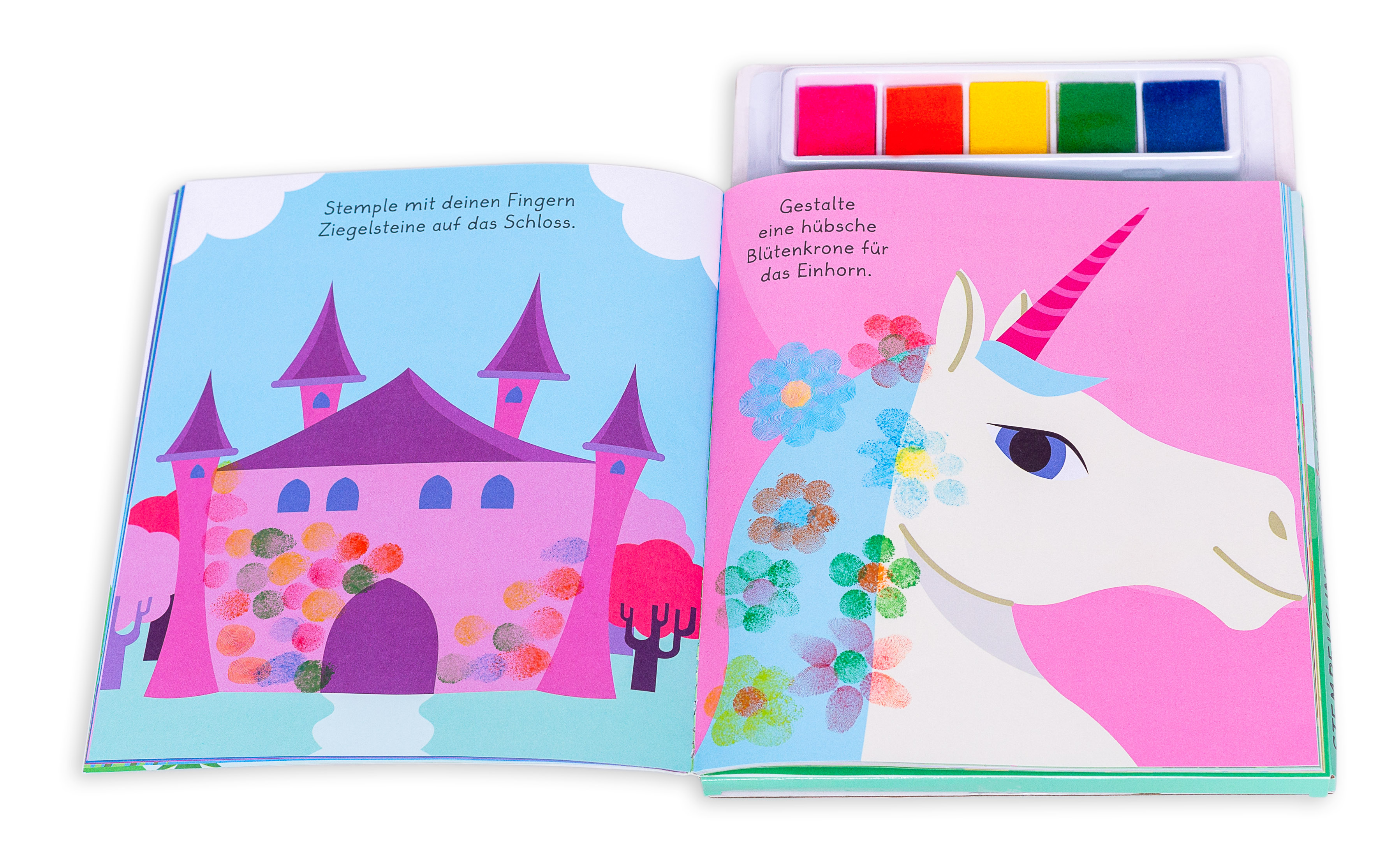 Das Einhorn-Kreativset enthält zudem eine leicht verständliche Anleitung mit Bildern, in der alle wichtigen Stempelformen erklärt werden.