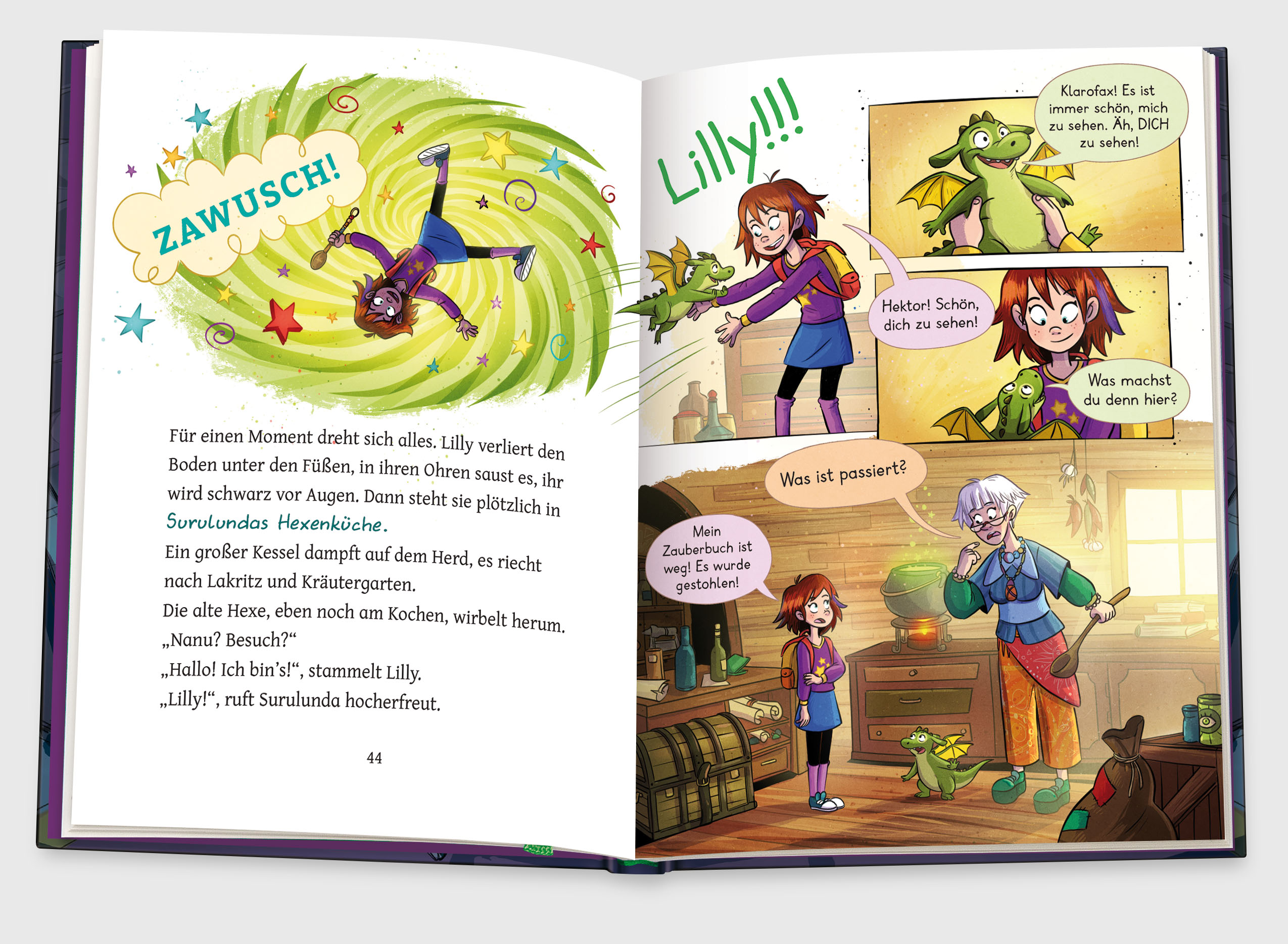 Lilly hat ein großes Geheimnis, von dem nicht einmal ihre beste Freundin weiß: Sie wurde von einem uralten Zauberbuch ausgewählt, alles zu lernen, was eine richtige Hexe wissen muss. Seitdem ist Lilly eine Geheimhexe. Doch jetzt ist das Zauberbuch verschwunden! Entführt von Grimbald, der ebenfalls Anspruch auf seine Magie erhebt und der nichts Gutes dabei im Sinn hat. Gemeinsam mit dem vorlauten Drachen Hektor macht Lilly sich auf, um ihr Buch zurückzuholen ... und steckt schon bald mittendrin in ihrem ersten unglaublichen Abenteuer.