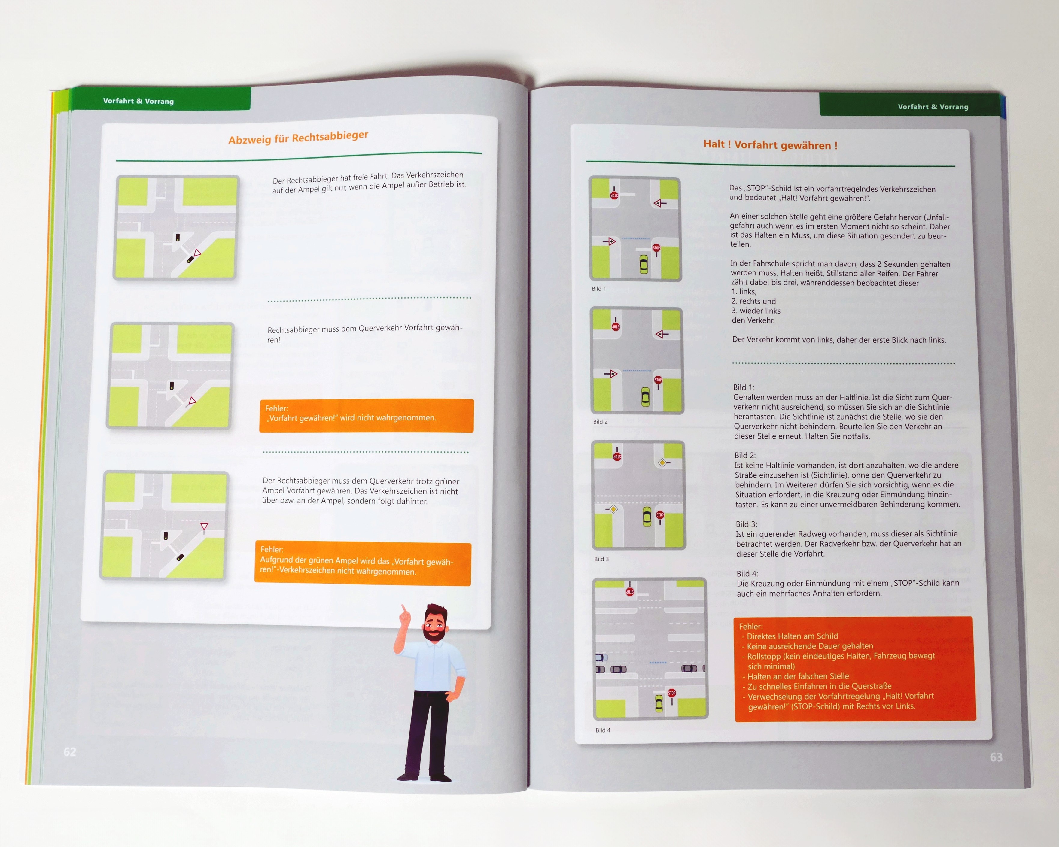 Im Straßenverkehr wirken viele Einflüsse und Eindrücke auf den Fahrschüler ein, eine Reizüberflutung, die gemeistert werden muss. Typische Fahrfehler werden hier im Praxisbuch gesondert erwähnt, damit Du für die Fahrprüfung bestens vorbereitet bist.
