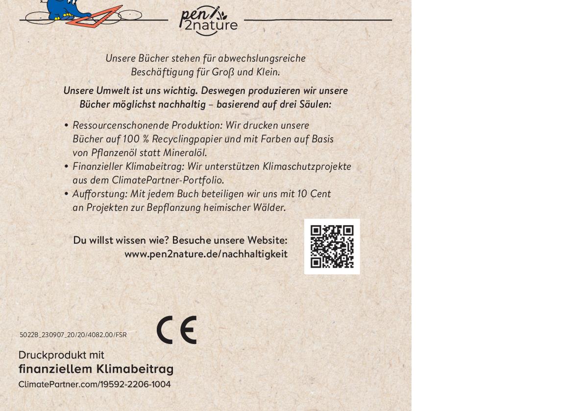 Für mehr Nachhaltigkeit im Alltag: Dieses Buch wurde mit Farben ohne Mineralöl und auf 100 % Recyclingpapier gedruckt. Rest-Emissionen werden durch die Unterstützung von Umweltprojekten ausgeglichen. Zusätzlich beteiligt sich der Verlag pen2nature mit jedem Buch mit 10 Cent an Projekten zur Bepflanzung heimischer Wälder. Wie genau das alles funktioniert? Auf seiner Website informiert der Verlag ausführlich und transparent darüber.