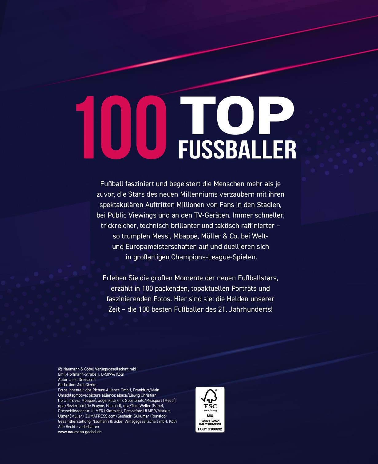Fußball fasziniert die Menschen überall auf der Welt. Die besten Spieler verzaubern mit ihren spektakulären Auftritten die Fans in den Stadien und an den Fernsehgeräten. Mit dem neuen Millennium betrat auch eine neue Generation von Ballkünstlern den Rasen. Messi, Mbappé, Müller & Co. trumpfen bei Welt- und Europameisterschaften auf und duellieren sich in großartigen Champions-League-Spielen. Erleben Sie die großen Momente der neuen Fußballstars, erzählt in 100 packenden, topaktuellen Porträts und faszinierenden Bildern. Hier sind sie: Die Helden unserer Zeit die 100 besten Fußballer des 21. Jahrhunderts!