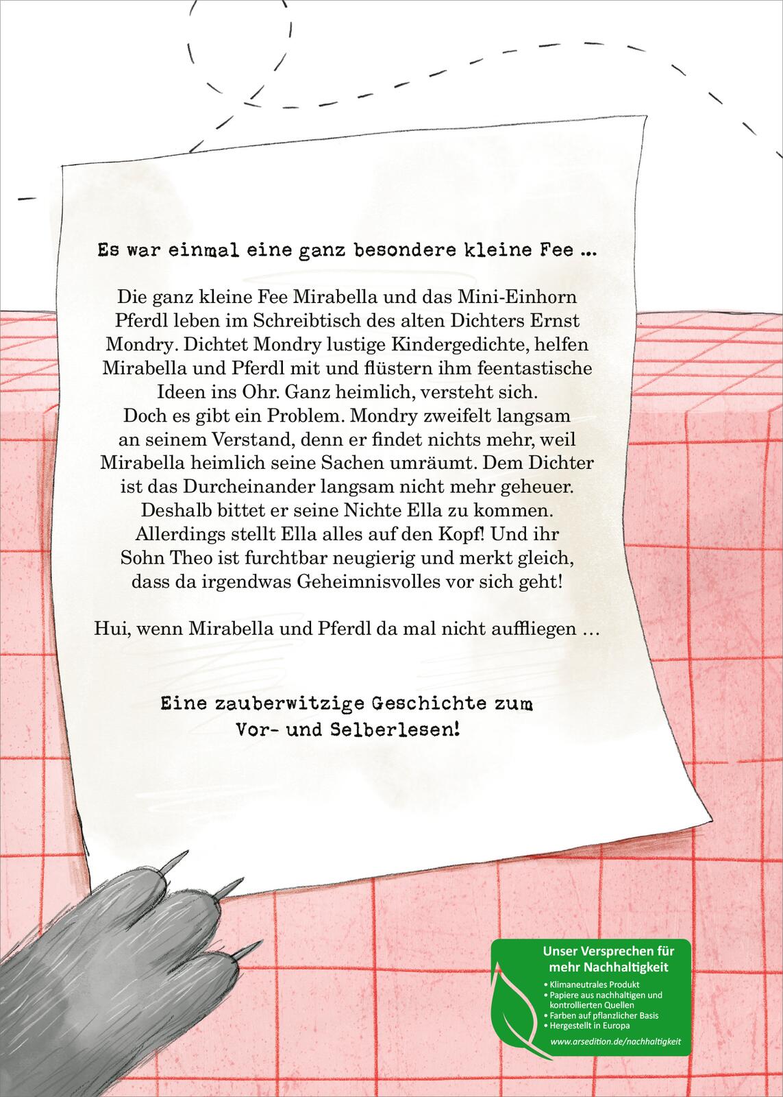 Die kleine Fee Mirabella und das Mini-Einhorn Pferdl leben in der oberen und mittleren Schublade im Schreibtisch des alten Dichters Ernst Mondry. Dort ist es sehr gemütlich, denn Ernst lässt immer ein paar Kekse rumliegen. Sitzt Ernst an seinem Schreibtisch und dichtet lustige Kindergedichte, helfen Fee und Pferdl mit und flüstern ihm feentastische Ideen ins Ohr. Ganz heimlich, versteht sich.