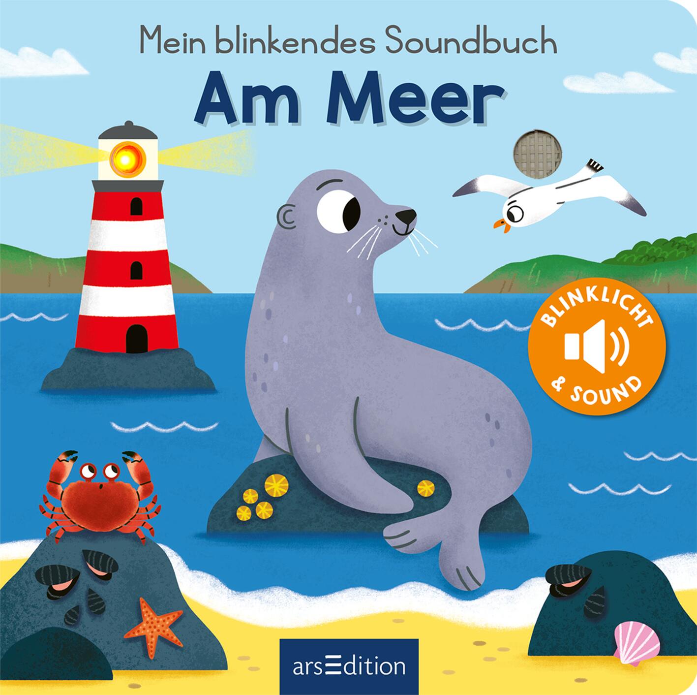 Der große Dampfer läuft tutend und blinkend in den Hafen ein. Ein neuer Tag am Meer beginnt! Es gibt so viel zu entdecken: Delfine, Fische und Quallen tummeln sich im Wasser. Am Strand spielen Kinder, plantschen im Wasser und bauen Sandburgen. Und am Abend schauen alle in den Sternenhimmel und lauschen dem Geräusch der Wellen. Schalte das Blinklicht ein und bringe die Sterne zum Leuchten!