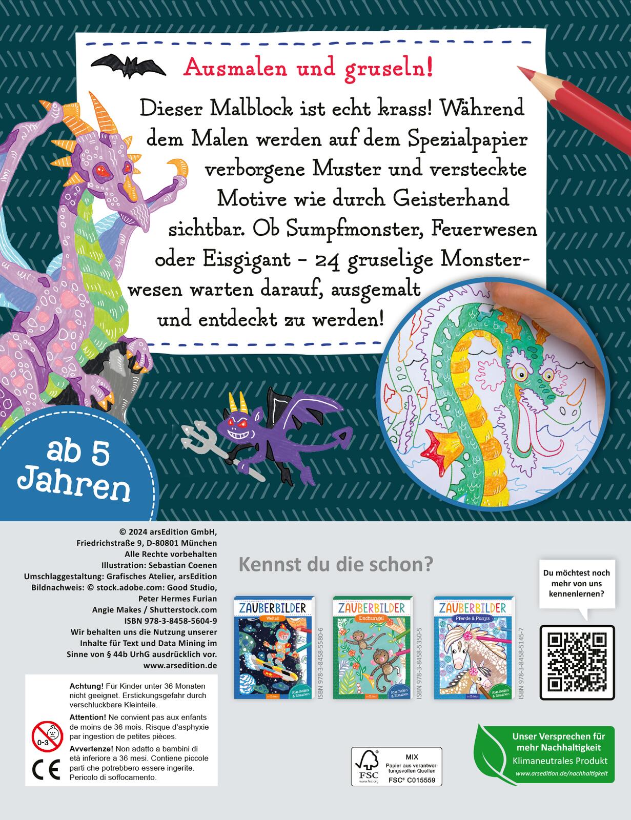 Dieser Malblock ist echt krass! Während des Malens werden auf dem Spezialpapier verborgene Muster und versteckte Motive wie durch Geisterhand sichtbar. Ob Sumpfmonster, Feuerwesen oder Eisgigant - 24 gruselige Monsterwesen warten darauf, ausgemalt und entdeckt zu werden!