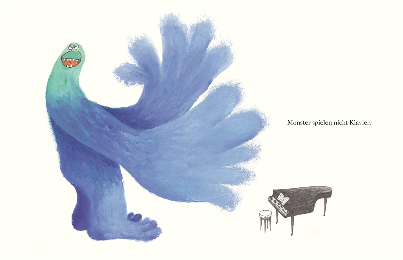 »Monster. Gern gesehene Gäste im Kinderbuch. Natürlich treten sie immer auf, um Ängste zu nehmen. So auch hier: Man erfährt, was Monster nicht mögen, brauchen, können (schwimmen, spielen, Angst haben). Warum, zeigen die gewitzten Illustrationen.«