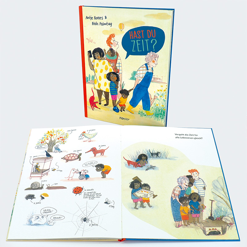 „Nele Palmtag schuf in dem ihr eigenen Buntstiftstil wimmelige Seiten voll freundlichem Personal, das sie ergänzend zum Text quasi Antworten geben lässt. Da können auch schon allerkleinste Leserchen ihren ganz eigenen Zeitkanon aufstellen und dem philosophischen Part der Zeit nachspüren. Die warmen Farben, das schön bunte Gewusel in den menschlichen und tierischen Handlungsebenen ergeben ein Buch, das jeder selbst mit Geschichten anreichern kann – wenn man sich die Zeit dafür nimmt.“ Christine Paxmann, Eselsohr. Fachzeitschrift für Kinder- und Jugendmedien, März 2024