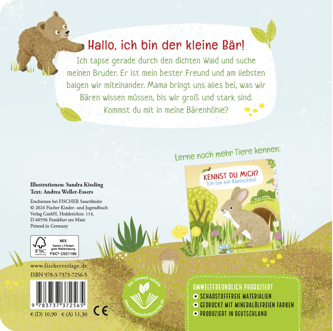 Huhu, siehst du mich? Ich bin der kleine Bär und tapse gerade alleine durch den dichten Wald. Die meiste Zeit spiele und balge ich aber mit meinem Bruder. Unsere Mama bringt uns alles bei, was Bären wissen müssen, bis wir groß und stark sind: Schnuppern, klettern und Fische fangen. Kommst du mit in mein Zuhause?