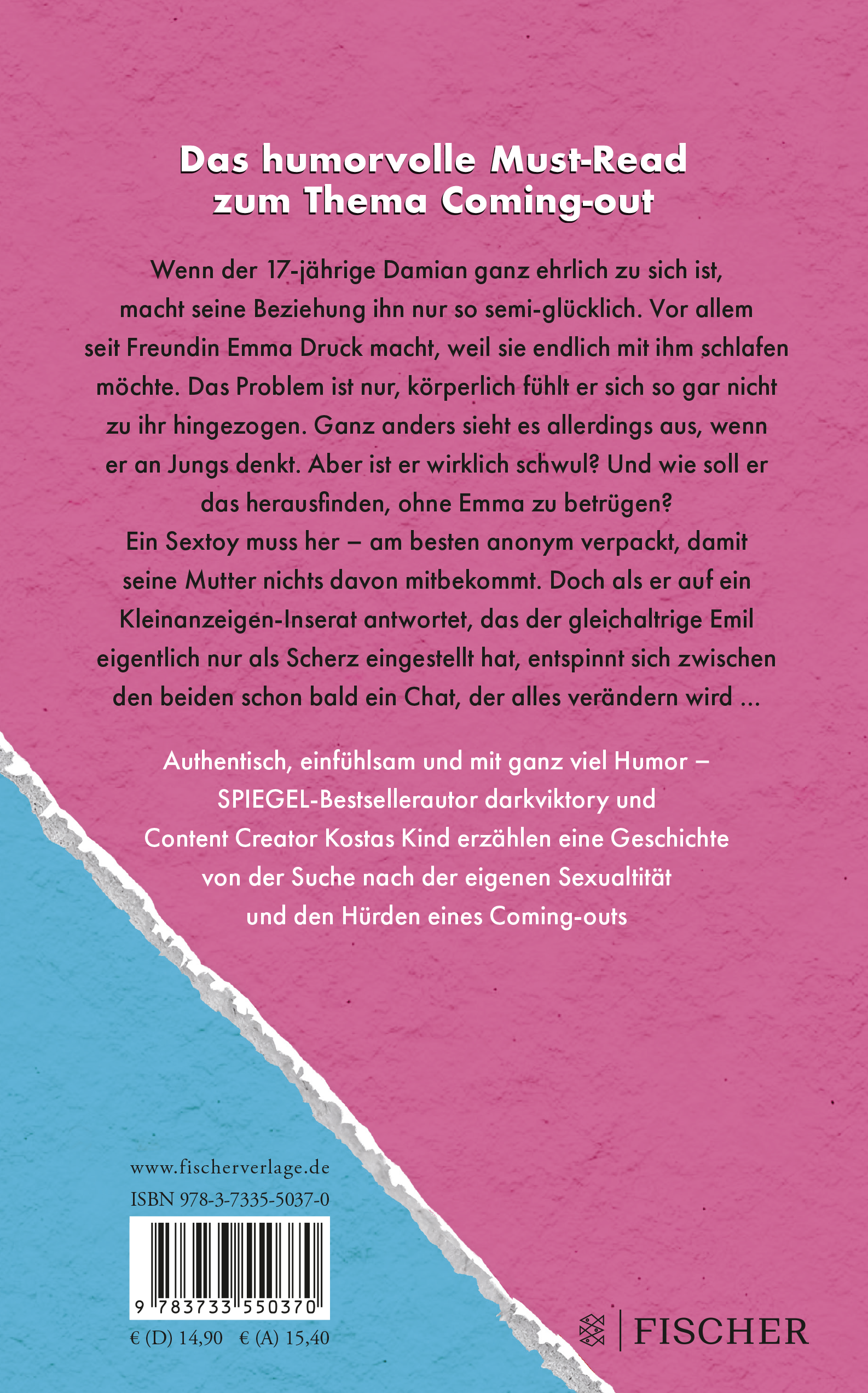 Authentisch, einfühlsam und mit viel Humor erzählen SPIEGEL-Bestsellerautor Marik Roeder alias darkviktory und Kostas Kind, Content Creator und Aktivist, eine Geschichte von der Suche nach der eigenen Sexualität und den Hürden eines Coming-Outs.
