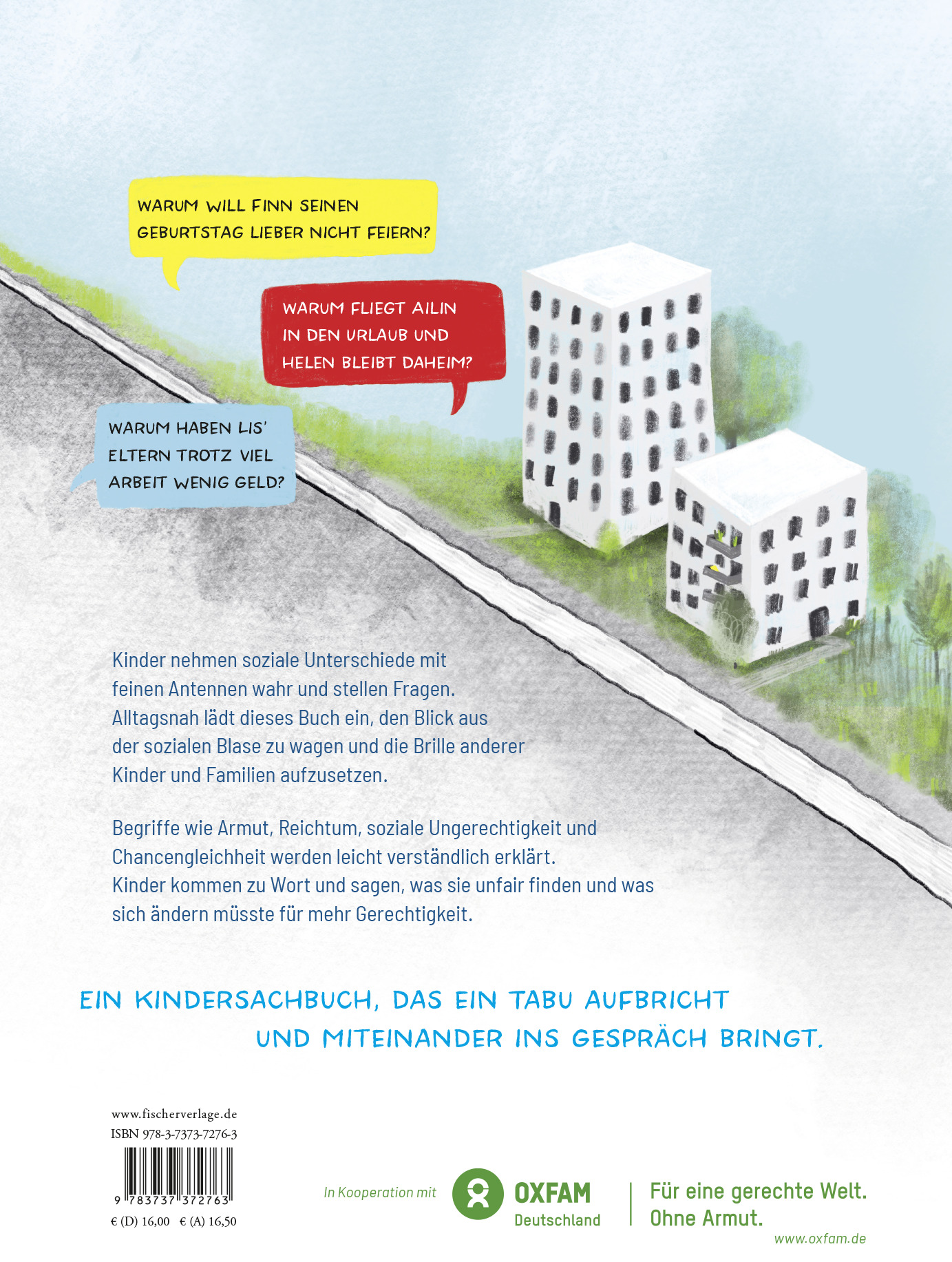 Warum kann Finn seinen Kindergeburtstag nicht feiern? Warum fliegt Ailin in den Urlaub und Helen bleibt daheim? Was arbeiten Lis Eltern? Kinder nehmen in ihrem Alltag mit feinen Antennen soziale Unterschiede wahr und stellen Fragen über die Gründe für Armut, Geldverteilung, Vorurteile und Ungerechtigkeit.