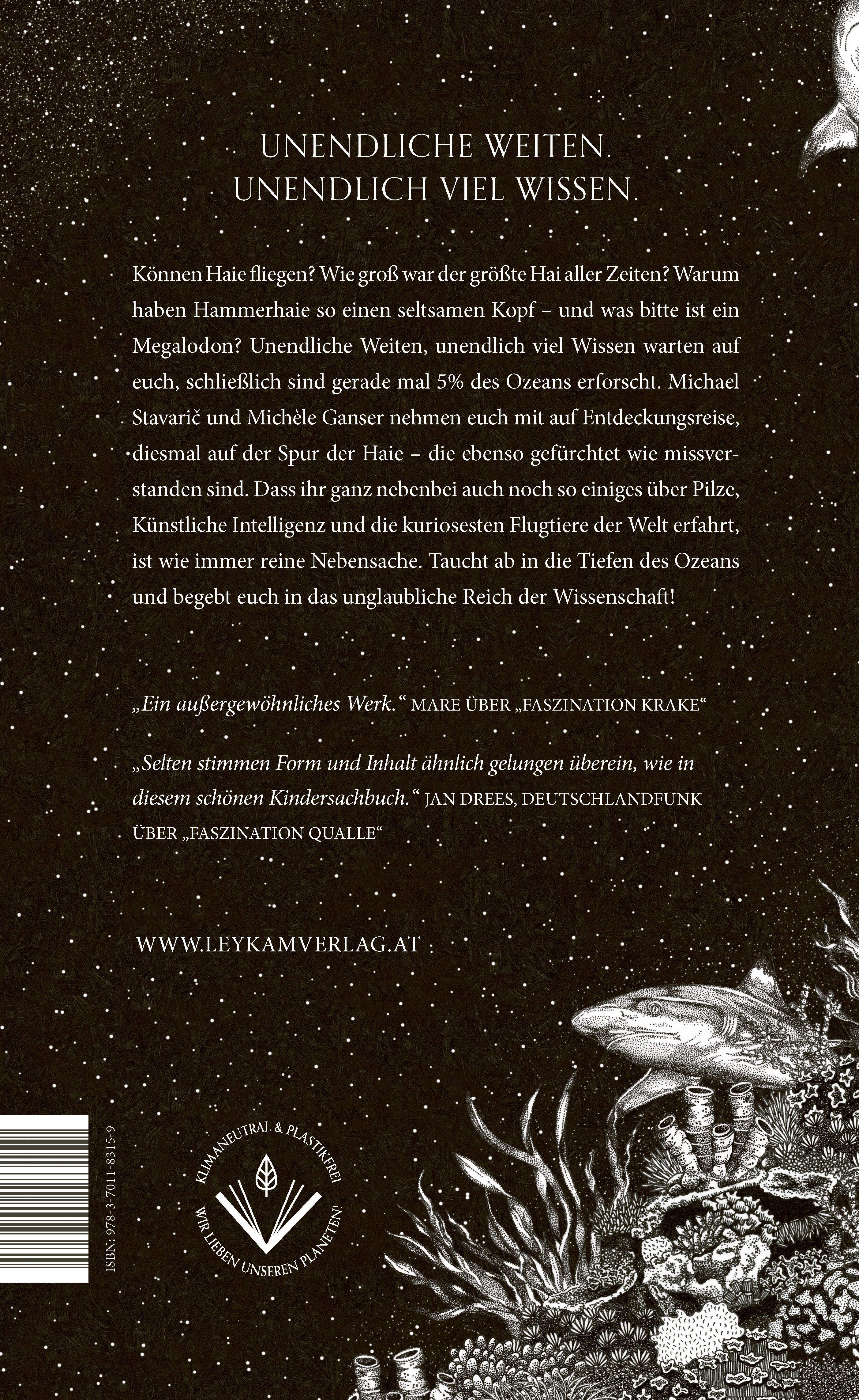 »Das „Faszination Haie“-Buch aus dem Leykam-Verlag sticht heraus, weil Kinder hier positiv gefordert, weil all ihre Sinne und viele ihrer Interessen thematisiert werden – als Gegenbewegung zum gesellschaftlichen Vereinfachungstrend.«