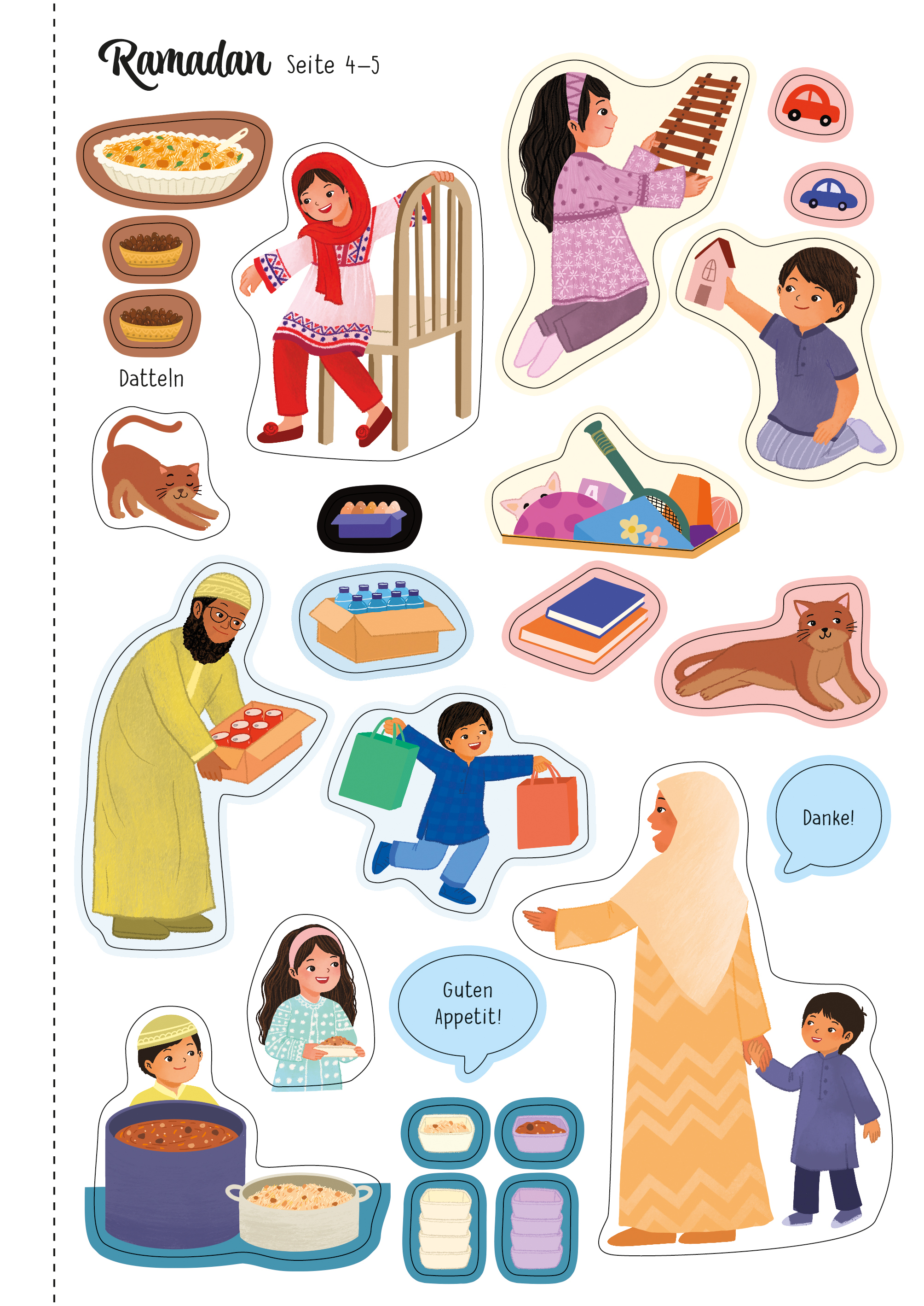 Ali und Aischa sind aufgeregt! Es ist Ramadan und bald wird die ganze Familie zusammenkommen, um das Zuckerfest zu feiern. Begleite sie bei den Vorbereitungen für dieses wichtige islamische Fest und gestalte mit über 200 wiederablösbaren Stickern die bunten Szenen.