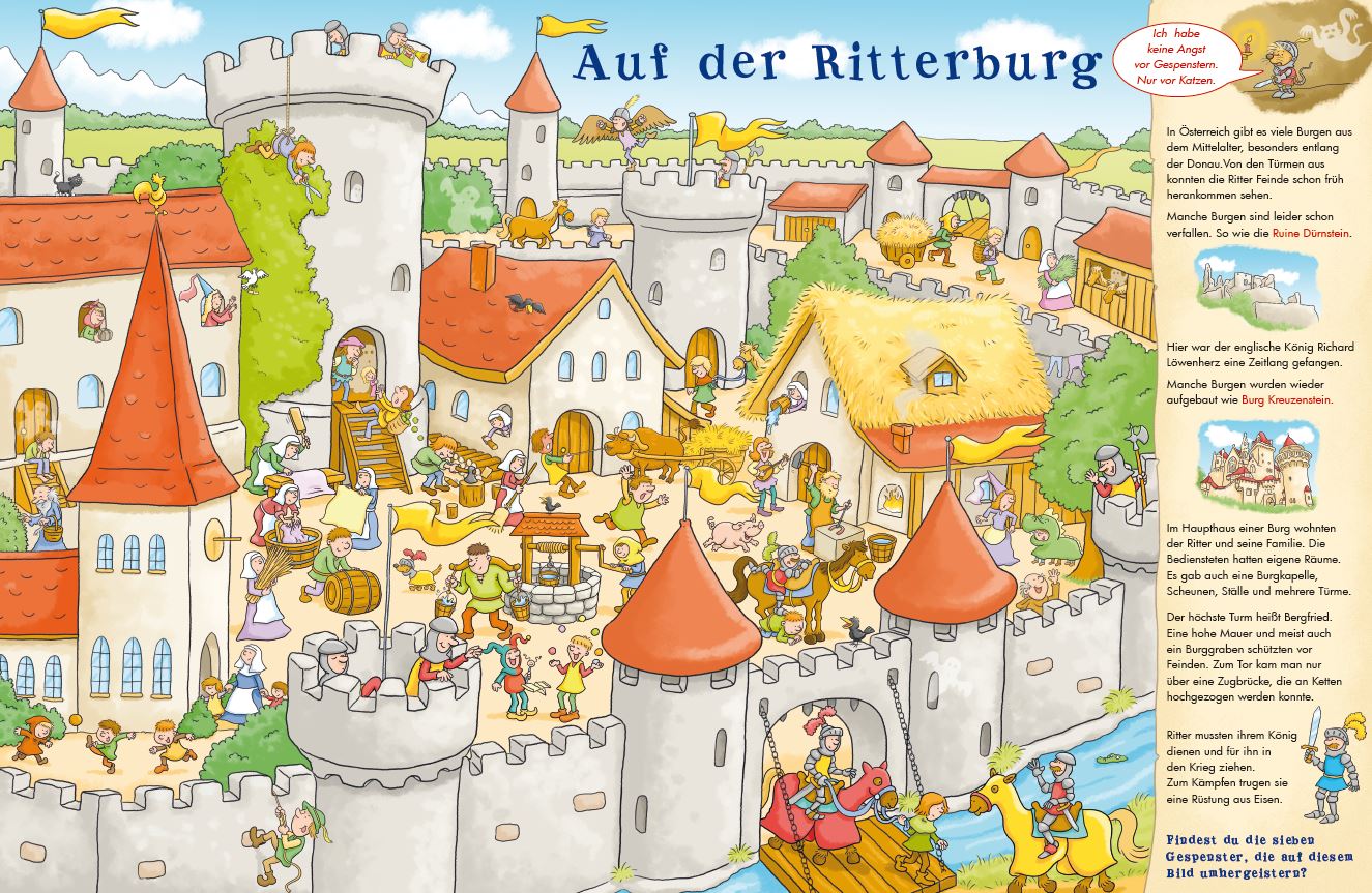 Ebenfalls werden wichtige Gebäude und Infos rund um Österreich abgebildet und erklärt.
