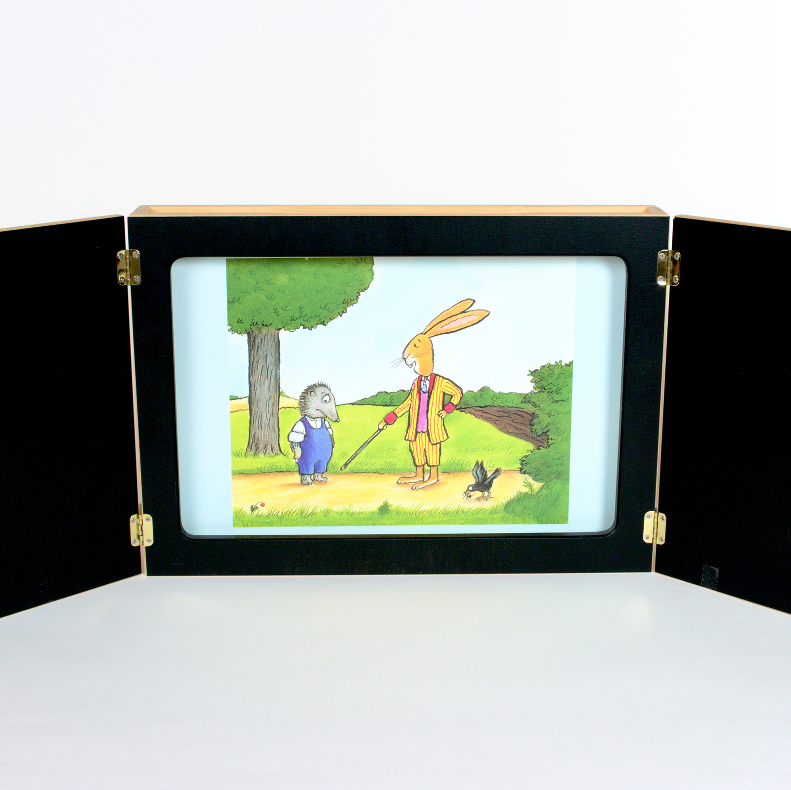 Diese Kamishibai-Geschichte zeigt das alte Märchen »Der Hase und der Igel«, ursprünglich von den Gebrüdern Grimm, neu erzählt und illustriert von Axel Scheffler. Zuhören, entdecken und hineinversetzen – mit diesem modernen Märchen fördern frühpädagogische Fachkräfte die sprachlichen Kompetenzen und das Moralverständnis ihrer Kita-Kinder.