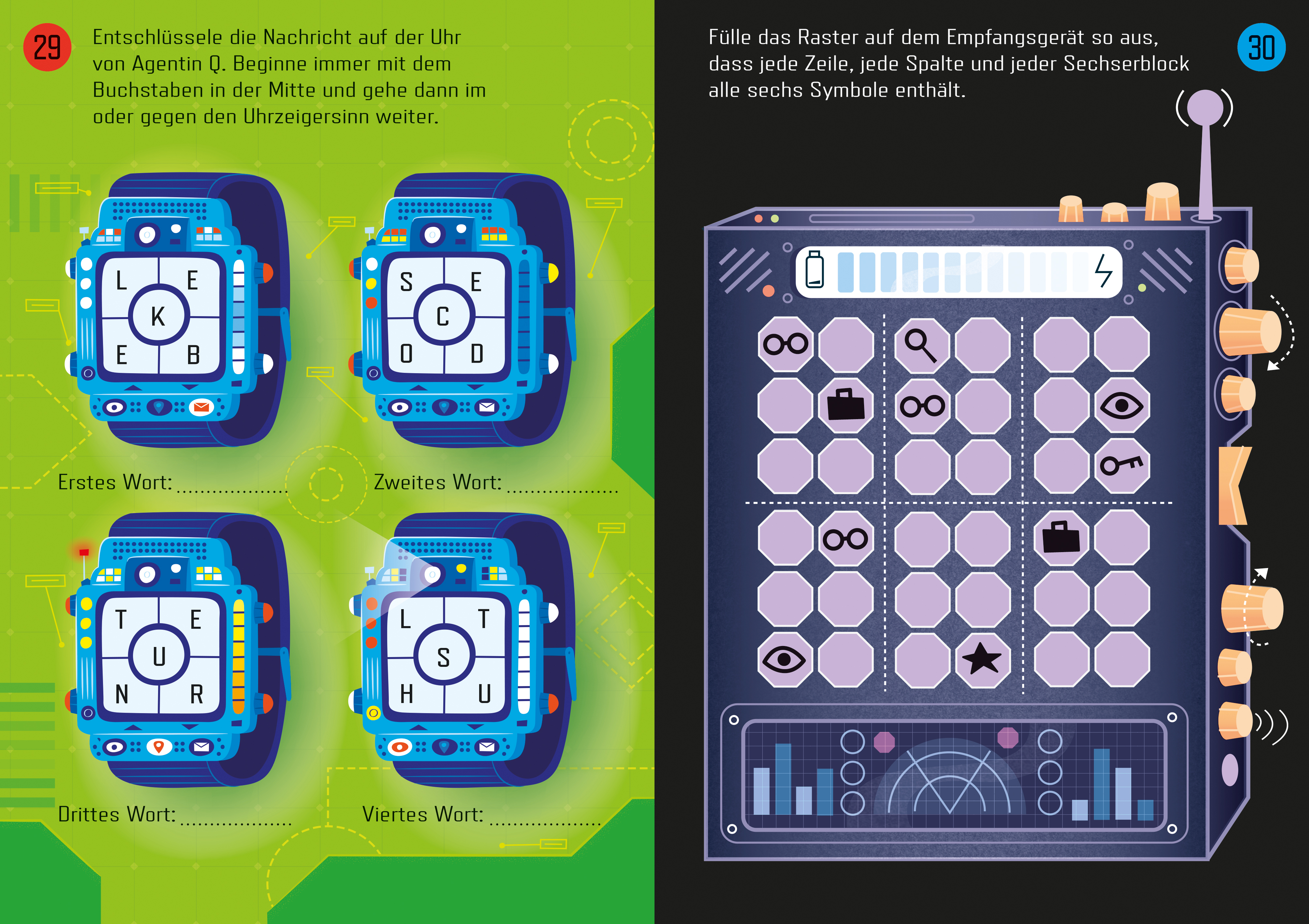 Mitmachbuch mit über 100 Rätseln rund um das Thema Geheimagenten und Geheimagentinnen - ab 6 Jahren