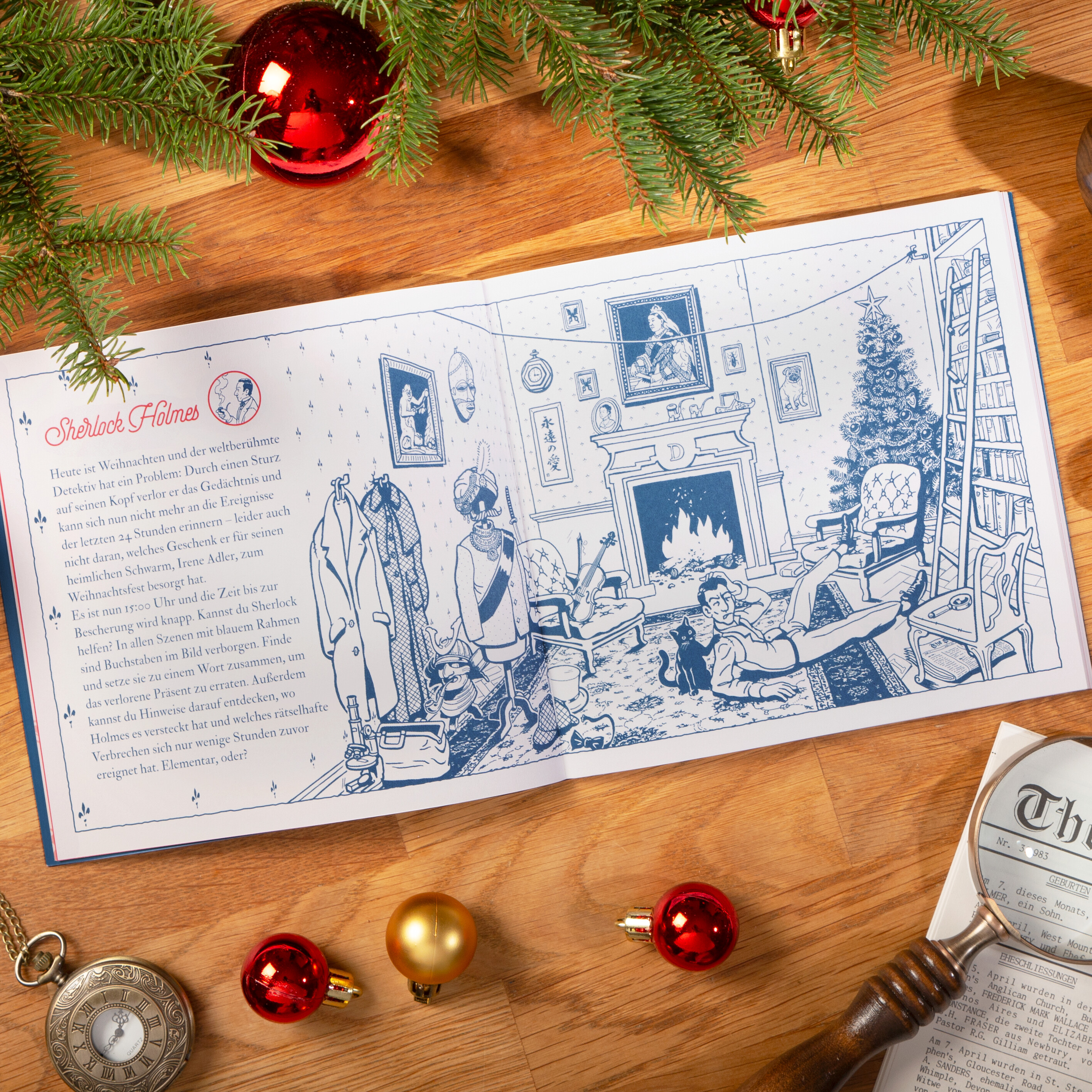 Sherlock Holmes, der berühmteste Detektiv der Welt, benötigt Mithilfe! Zwei mysteriöse Fälle zur Weihnachtszeit führen in das verschneite London des viktorianischen Zeitalters und laden die ganze Familie zum Miträtseln ein. Zahlreiche Hinweise zur Lösung lassen sich in den aufwendig illustrierten Wimmelbildern entdecken und garantieren Spaß für Krimifans jeden Alters. Beliebte Charaktere aus dem Holmes-Universum wie Dr. Watson, Mrs. Hudson oder Prof. Moriarty dürfen dabei nicht fehlen. Das perfekte Geschenk für alle Fans der Sherlock Holmes-Bücher und -Verfilmungen!