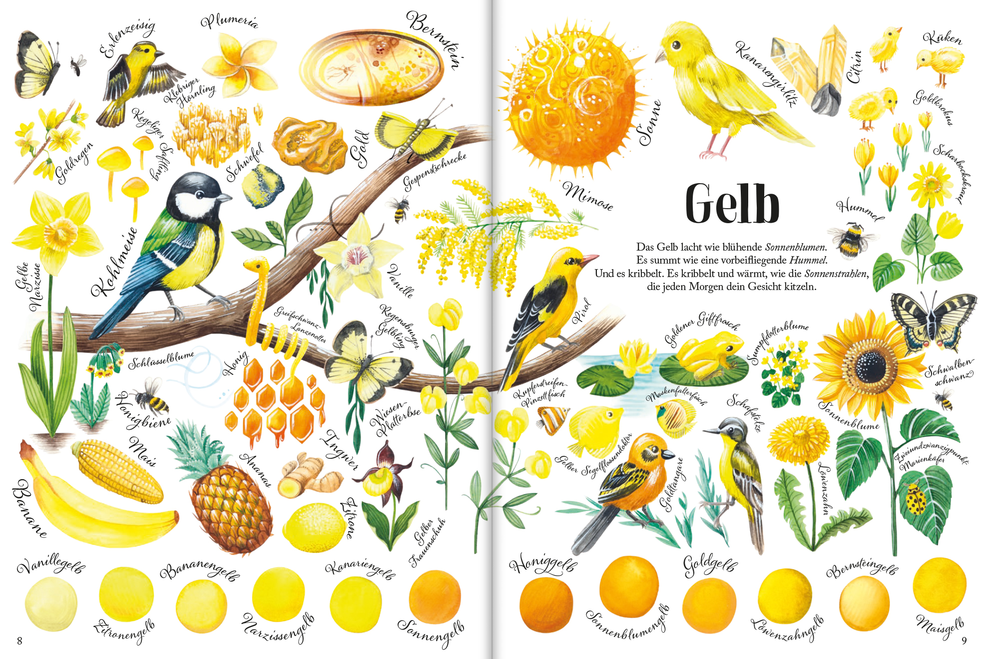 Zitronengelb, Jadegrün, Ozeanblau und Flamingorosa - die Natur steckt voller wunderbarer Farben! Sie haben uns Menschen über Jahrhunderte hinweg dazu inspiriert, Farbtöne nach Pflanzen, Tieren und Mineralien zu benennen. Dieses kunstvolle Bilderbuch lädt Klein und Groß zu einer inspirierenden Entdeckungsreise durch die zwölf bekanntesten Farbwelten und ihre zahlreichen Nuancen ein: Welcher Farbton passt zu welchem Tier, welcher Pflanze und welchem Stein? Wie schmecken Farben? Wie riechen sie? Und wie lassen sich die verschiedenen Farbtöne mischen?