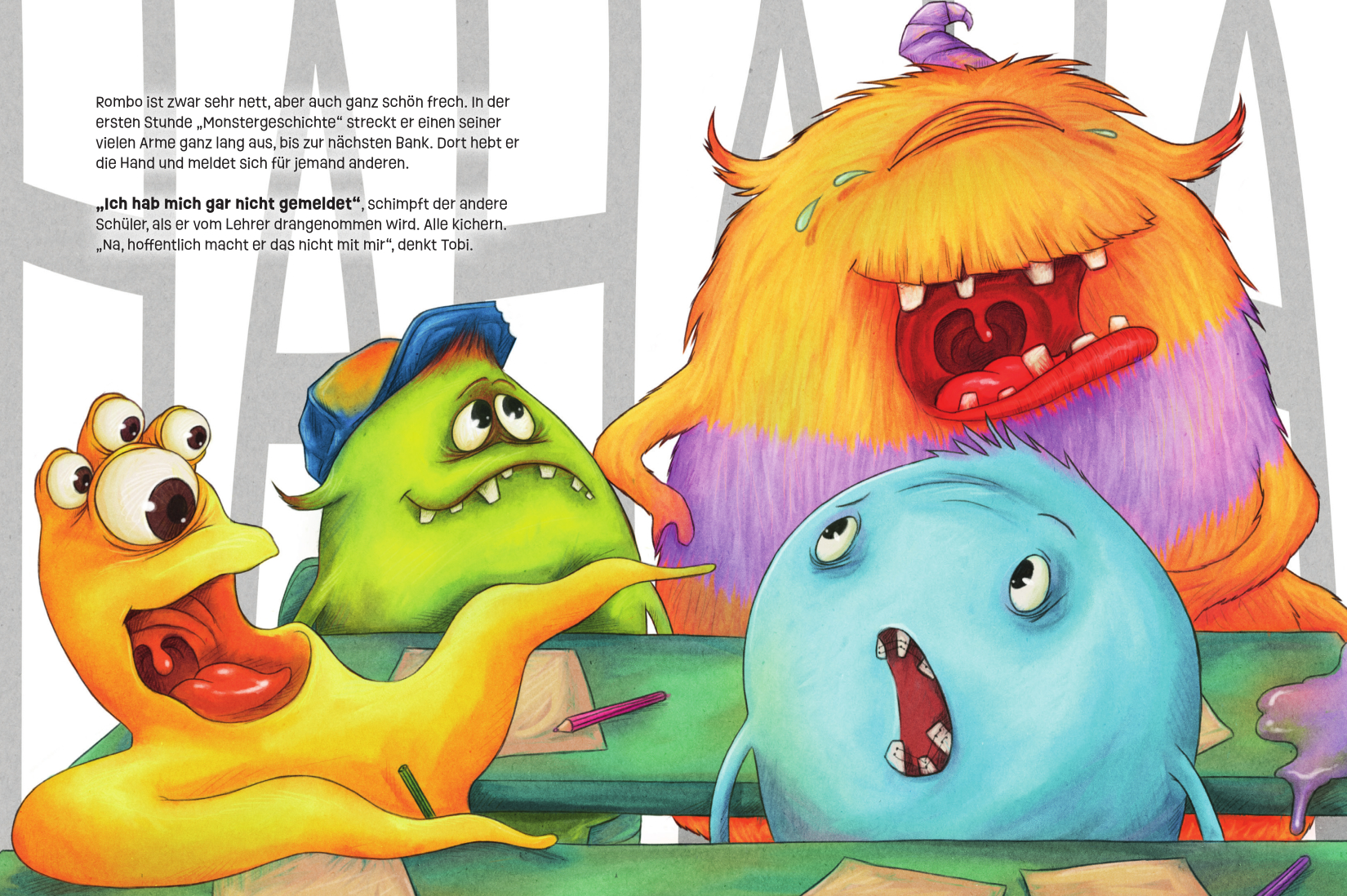 Ein Bilderbuch zum Thema Wut: Das kleine Monster Tobi wird immer sehr schnell wütend und blöderweise wird er dann immer knallrot und bekommt bunte Monstermasern. Sein großer Bruder zieht ihn damit immer auf. Und Tobi mag es gar nicht ausgelacht zu werden. Und jetzt muss er auch noch in die neue Monsterschule. Was, wenn er dort auch wütend wird und sich alle über ihn lustig machen…?