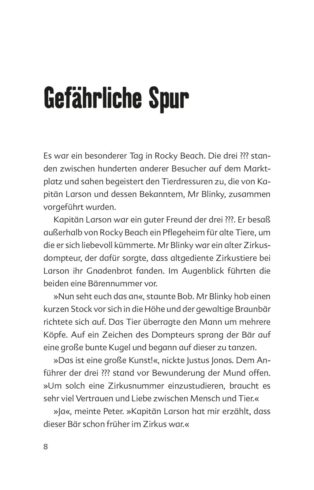 In Rocky Beach warten verzwickte Rätsel auf die Nachwuchsdetektive: Wie ertappt man einen Trickbetrüger auf frischer Tat? Macht ein gefährlicher Bär die Straßen der Stadt unsicher? Und wer ist für das Verschwinden von Mrs Carters Henne verantwortlich? Wo es Verbrechen und haarige Fälle zu lösen gibt, sind auch Justus, Peter und Bob nicht weit.
