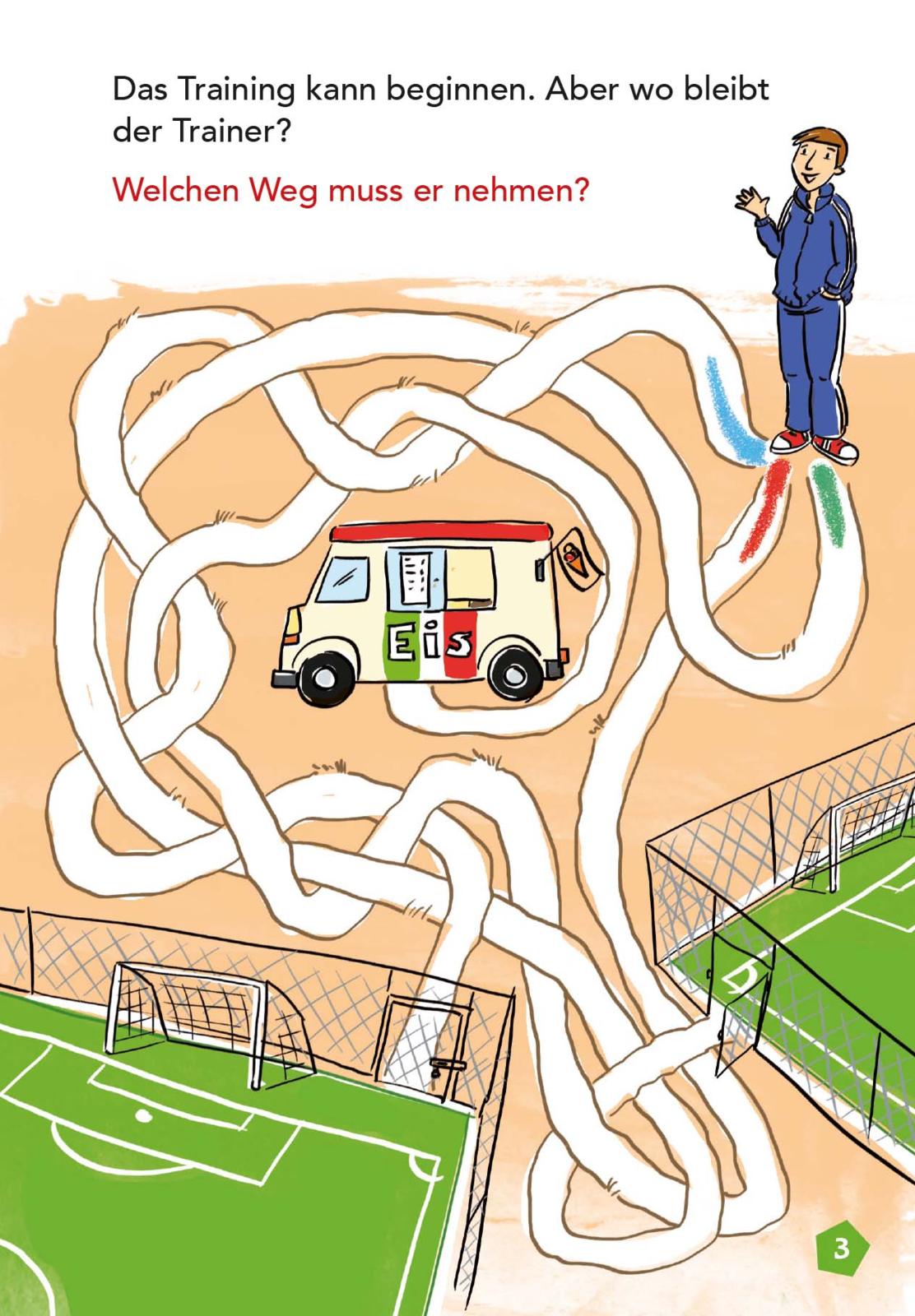 - Mit Fußball-Pokal zum Ausmalen am Ende des Rätselblockes.
