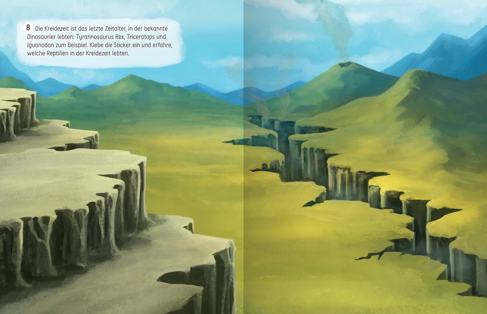 Cooles Stickerbuch für Kinder ab 4 Jahren mit Ausmalbilder und kurzen Texten bietet eine schöne Beschäftigung.Erlebe faszinierende Wesen der Urzeit: die Dinosaurier.In diesem Stickerbuch kannst du 150 Dinosaurier mit Metalliceffekten entdecken.T-Rex, Triceratops oder Hainosaurus warten darauf, von dir ausfindig gemacht zu werden. In neun verschiedenen Szenen kannst du die Sticker kunterbunt einkleben. Spannende Dinosaurierszenen zum Ausmalen am Ende des Buches laden zum Entspannen ein.Die Welt der Dinosaurier in einem interaktiven Stickerbuch für Kinder ab 4 Jahren kennenlernen und das Wissen über Dinosaurier auffrischen.