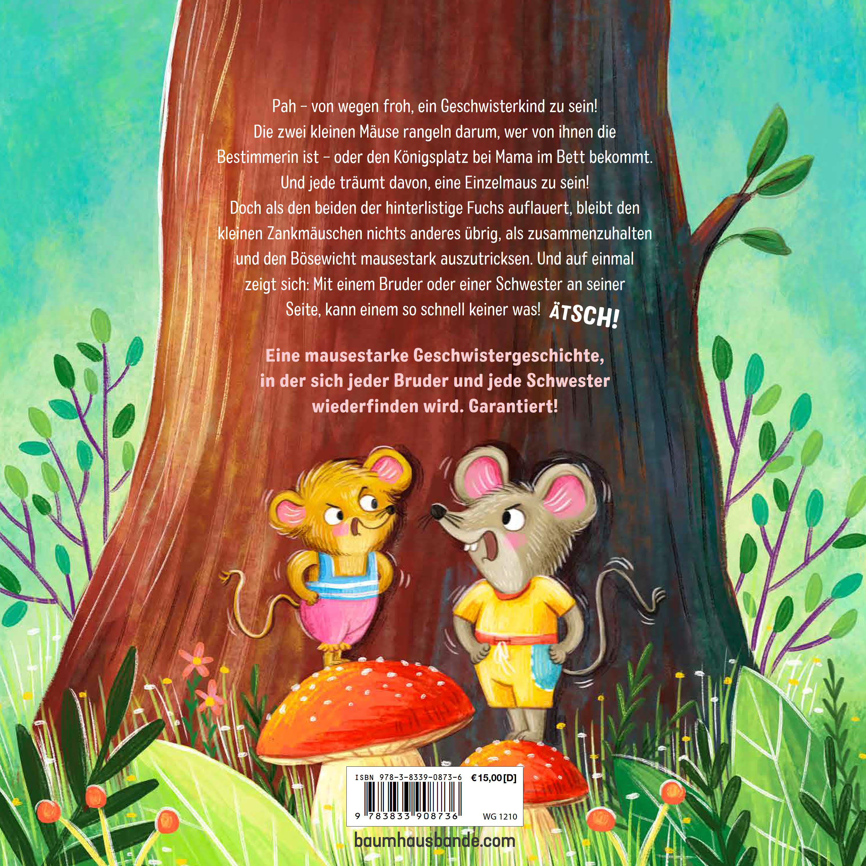 Spinnefeind und unzertrennlich: Ein Buch für alle Geschwister, die sich nerven und sich liebenPah, von wegen froh, ein Geschwisterkind zu sein! Die zwei kleinen Mäusegeschwister rangeln darum, wer von ihnen die Bestimmerin ist oder den Königsplatz bei Mama im Bett bekommt. Und jede träumt davon, eine Einzelmaus zu sein! Doch als den beiden der hinterlistige Fuchs auflauert, bleibt den kleinen Zankmäuschen nichts anderes übrig, als zusammenzuhalten und den Bösewicht mausestark auszutricksen. Und auf einmal zeigt sich: Mit einem Bruder oder einer Schwester an der Seite, kann einem so schnell keiner was! Ätsch!Erfolgsautorin Lucy Astner erzählt in Reimen emotional und witzig eine starke Geschwistergeschichte, in der sich jeder Bruder und jede Schwester wiederfinden wird. Garantiert!Zauberhaft und warmherzig illustriert von Pina Gertenbach.