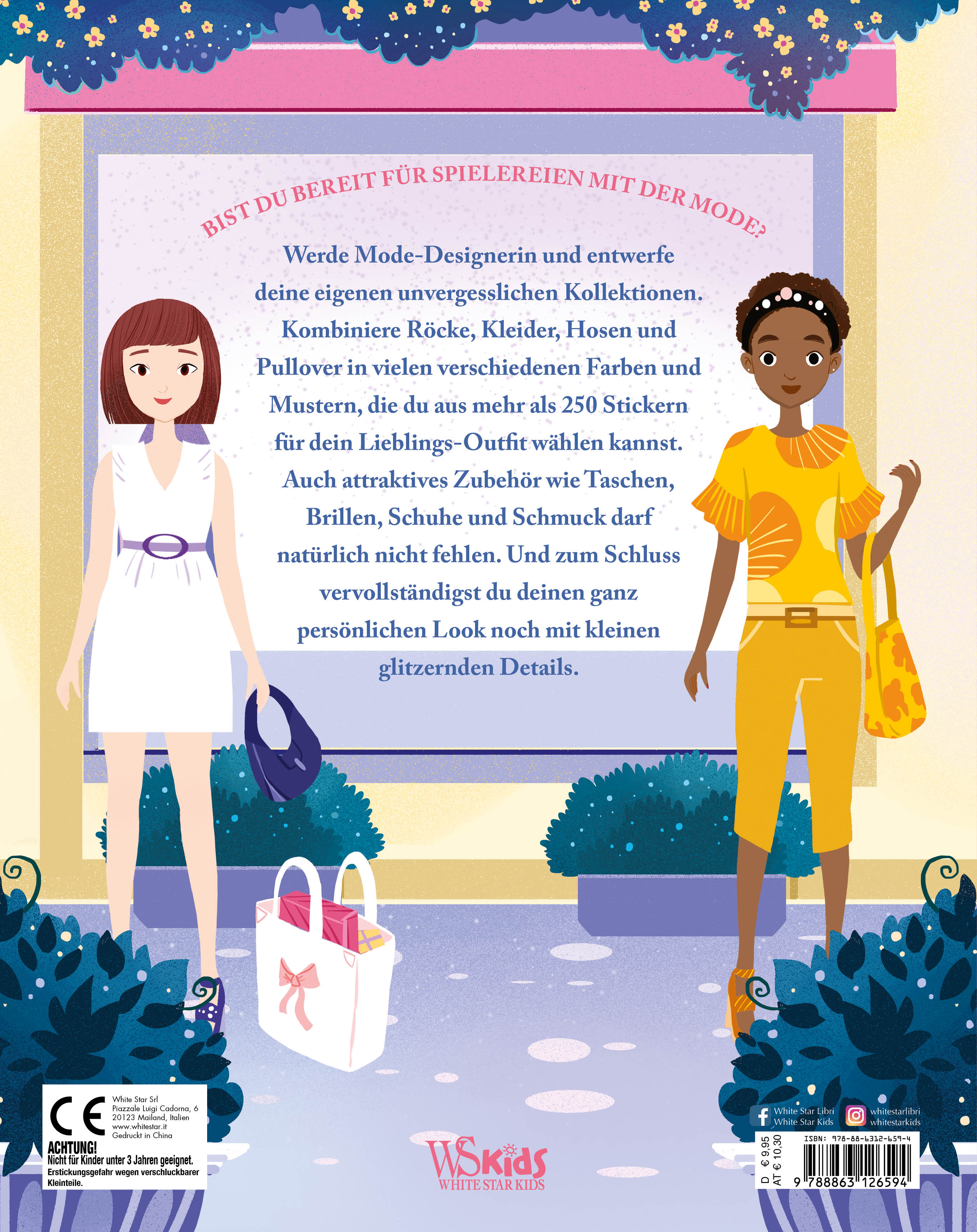 Gestalte jetzt deine eigene Modekollektion: Abendkleider, Handtaschen, Schmuck oder Mode für den Laufsteg. Dieses farbenfrohe und fantasievolle Spielebuch macht dich zur erfolgreichen Designerin. Erschaffe exklusive bunte Outfits für die Topmodels und ihre Freundinnen. Für jede Saison findest du hier Tipps und Anregungen, coole Looks und passende Accessoires. Modische Sticker und Glitzersticker helfen dir dabei, die Models sehr schick aussehen zu lassen und sie toll in Szene zu setzen. Mit vielen wiederverwendbaren Kleiderstickern und Extras kannst du ihnen zu einem funkelnden Auftritt verhelfen. Perfekt für alle, die Lust auf die Modewelt haben.