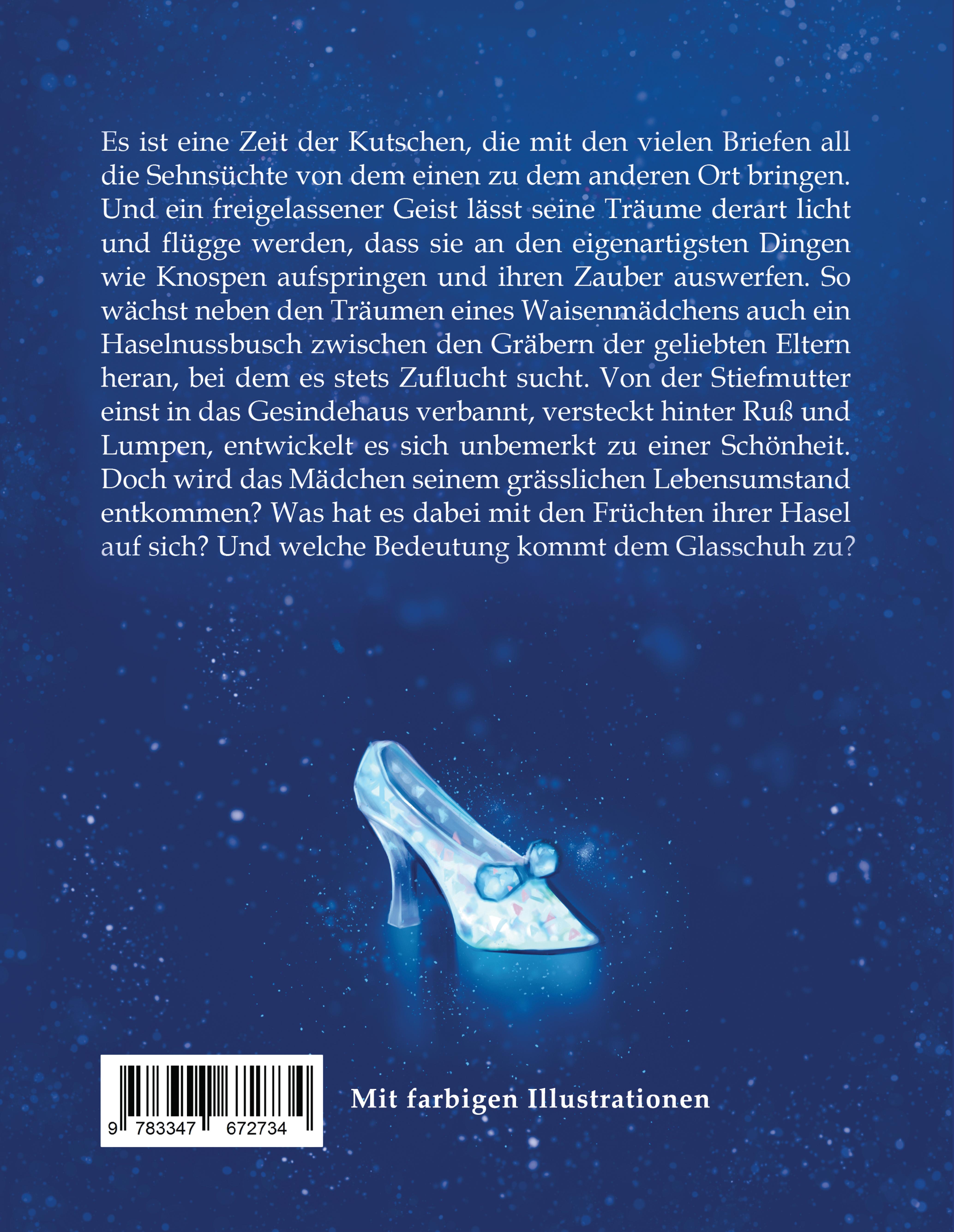 Das alte Grimm-Märchen von dem Waisenmädchen und dem gläsernen Schuh wurde für Jung und Alt NEU und zauberhaft erzählt. Lerne ihre Stiefmutter und deren Tochter kennen! Erfahre, welche Menschen ihr wohl gesonnen sind und über welche Stärken sie verfügt! Wie meistert das Kind die schwere Situation, in der es sich befindet? Wie dreht das Schicksal sein Rädchen? Erlebe den Zauber noch einmal ganz neu. Dieses Märchen ähnelt dem Klassiker, ist aber angelehnt an die wahren Zustände des 17. Jahrhunderts in Deutschland, hinsichtlich der Kleidung und Feste des Adels und des Volkes, der Aufgaben und Unterschiede zwischen den Menschen jener Zeit, der Ablösung der Hexenverfolgung durch die Irrenanstalten und der Strafen adliger Frauen. Es kann nicht genug Wunder geben und man kann nie zu viel von diesem schönen Mädchen hören, das ihren Weg in ein besseres Leben findet. Sie tritt in die gläsernen Schuhe, die jedes kleine und große Mädchen in ihrem Schrank finden möchte. Was die Leser aber zwischen den Zeilen dieser neuen, glitzernden Ausgabe des alten Grimm-Märchens finden, ist der Strickplan zum Glück; durch Glaube, Hoffnung und Liebe. Auf den letzten Seiten des Buches finden sich die Skizzen zu den Illustrationen. Hier darf jeder selbst zu bunten Stiften greifen und entweder die farbigen Bilder als Vorlage nutzen und nachstellen oder die Skizzen mit anderen Farben aufleben lassen. Die dicken Buchseiten verhindern das Durchscheinen der Farbe. Dieses Märchen besitzt den üblichen Aufbau: Märchenanfang (Titelheldin in einem ungerechten Zustand und einer Notsituation) Märchenhandlung (Hindernisse, schwierige Aufgaben, Zauber, Abenteuer, Rätsel) Märchenende: Das Böse wird bestraft und das Gute wird belohnt. Lehre: Vertrauen auf das Gute in der Welt; Glaube an sich, ein höheres Bewusstsein und an höhere Mächte, um sich und sein Leben neu zu erfinden. Protagonisten im Handlungsabriss: Die Hauptperson Lilien ist die leibliche Tochter eines Witwers. Der Gutsherr geht eine neue Ehe mit einer jungen, geheimnisvollen Frau ein. Sie ist ebenfalls Witwe und bringt ihre Tochter Dorothea mit. Die Kinder mögen sich, doch werden einander entfremdet, als Liliens Vater auf mysteriöse Weise stirbt. Nun beginnt der große Leidensweg der Vollwaise. Einzig die Küchenmamsell kümmert sich liebevoll, als das zarte Kind im Kellerverlies des Gesindehauses untergebracht wird. Doch ein Haselbusch zwischen den Gräbern der Eltern spendet ihr nicht nur Trost, sondern wirft wiederholt einen Zauber über sie, der jedes mal um Mitternacht endet. Auf einem Erntedankfest, Turnier und Maskenball lernt der Königssohn das hübsche Mädchen kennen und lieben. Doch bis ihn der Glasschuh zu der geflohenen Lilien führt, ist sie den Anfeindungen der Stiefmutter und damit einem Inquisitor und einem Konsilium von Ärzten ausgesetzt. Schließlich endet Liliens Leid an der schützenden Hand des Prinzen und die Stiefmutter lebenslang im Turm des Gutshauses.