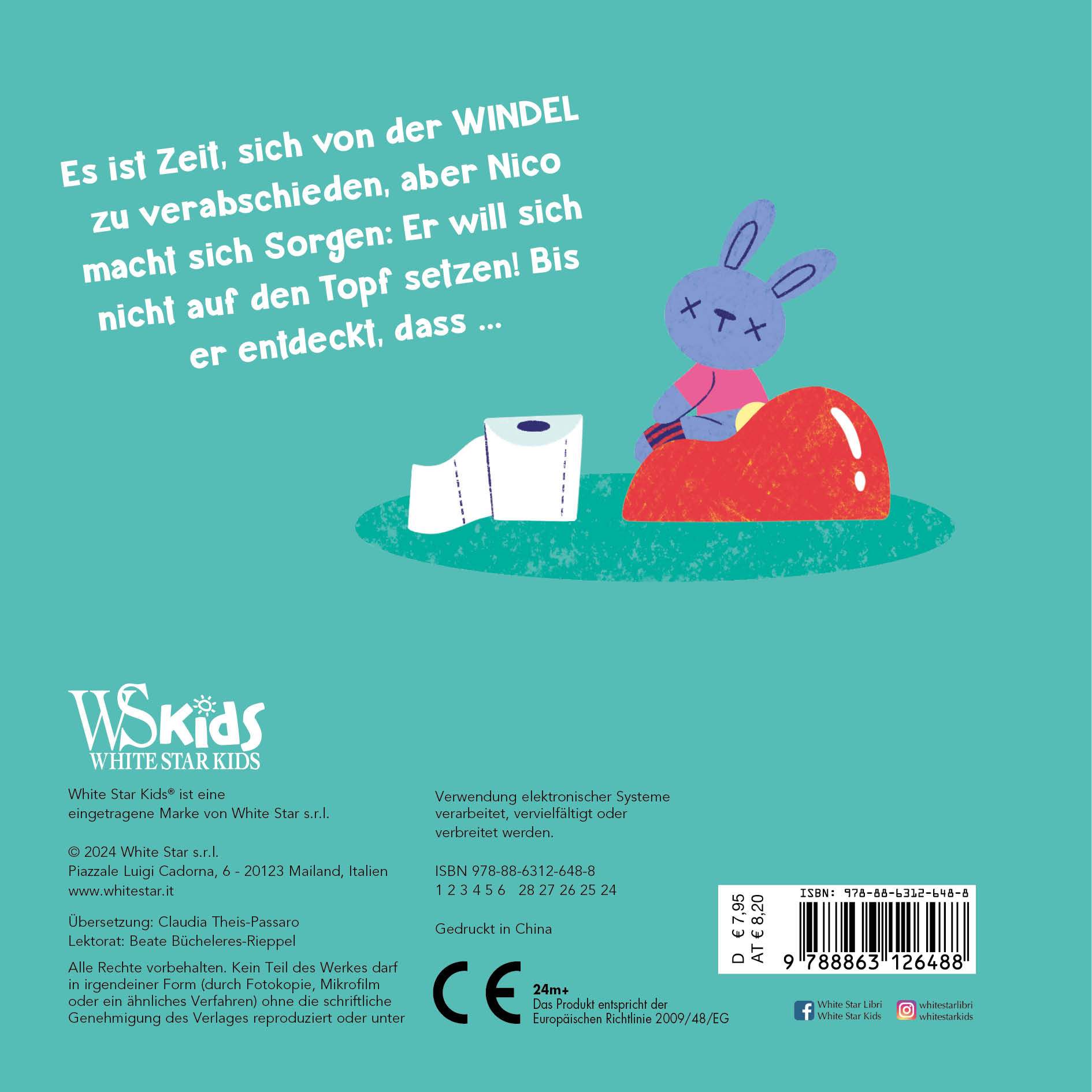 Jedes Kind ist einzigartig und folgt in seiner Entwicklung seinem ganz eigenen Rhythmus. Das gilt auch fürs Pipimachen mit Töpfchen. In diesem interaktiven Büchlein lernt das Häschen Nico, wie das Trockenwerden ohne Windel geht. Da ist Bewegung drin - denn Schiebe-Elemente bringen auf jede Seite eine unerwartete Überraschung. Detaillierte und farbenfrohe Illustrationen machen den kleinen Betrachter mit der unbekannten Situation Töpfchentraining vertraut. Das gemeinsame Ansehen der Bilder, Schieben der Elemente und Vorlesen der Geschichte bieten Gesprächsanlässe zwischen Eltern und Kind. So klappt das Auf's-Töpfchen-Gehen von Tag zu Tag immer besser.