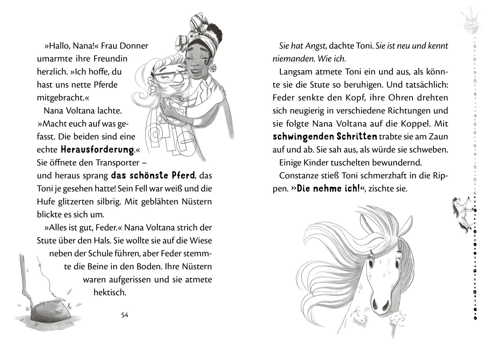 Einhörner? Drachenpferde? Gibt es nur im Märchen, denkt Toni. Bis sie auf die Kirschbaumschule wechselt. Dort erfährt sie, dass es sehr wohl magische Pferde gibt. Zwischen Heuduft und Hufgeklapper lernt die schüchterne Toni alles über Zauberpferde - und als plötzlich Feder und Cosmo an die Schule kommen, soll einer der beiden Tonis magischer Begleiter werden. Toni ist sich sicher: Die schöne Schimmel-Stute Feder ist ihr Einhorn! Doch ganz sicher weiß man das erst, wenn sich die Tiere verwandeln. Bis es so weit ist, wirbelt das trubelige Pony Cosmo Tonis Leben ganz schön durcheinander und sorgt dafür, dass sie aus ihrem Schneckenhaus ausbricht. Und auf einmal ist sich Toni nicht mehr sicher, wer ihr magischer Begleiter wird ...