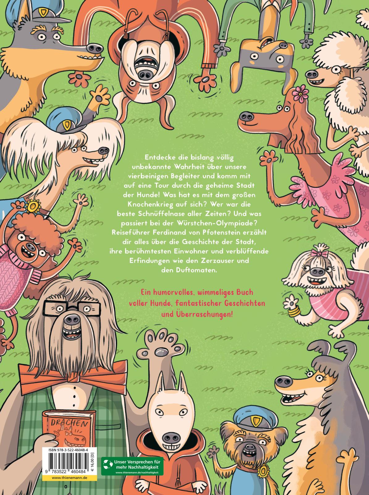Dieses Buch enthüllt die bislang völlig unbekannte Wahrheit über unsere vierbeinigen Begleiter. Reiseführer Ferdinand von Pfotenstein bietet uns eine exklusive Tour durch die geheime Stadt der Hunde. Wir erfahren alles über den legendären Knochenkrieg, die besten Schnüffelnasen der Geschichte, die aufregende Würstchen-Olympiade und was Hunde in der Hundeschule wirklich lernen.