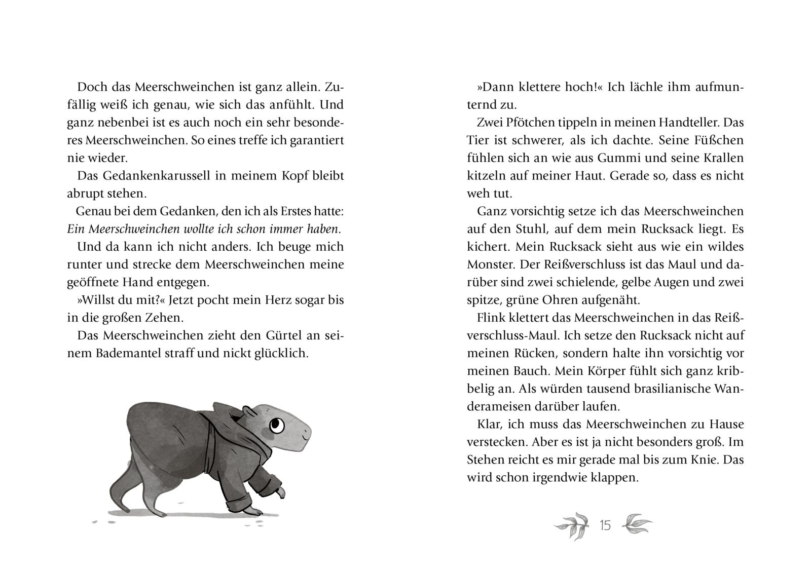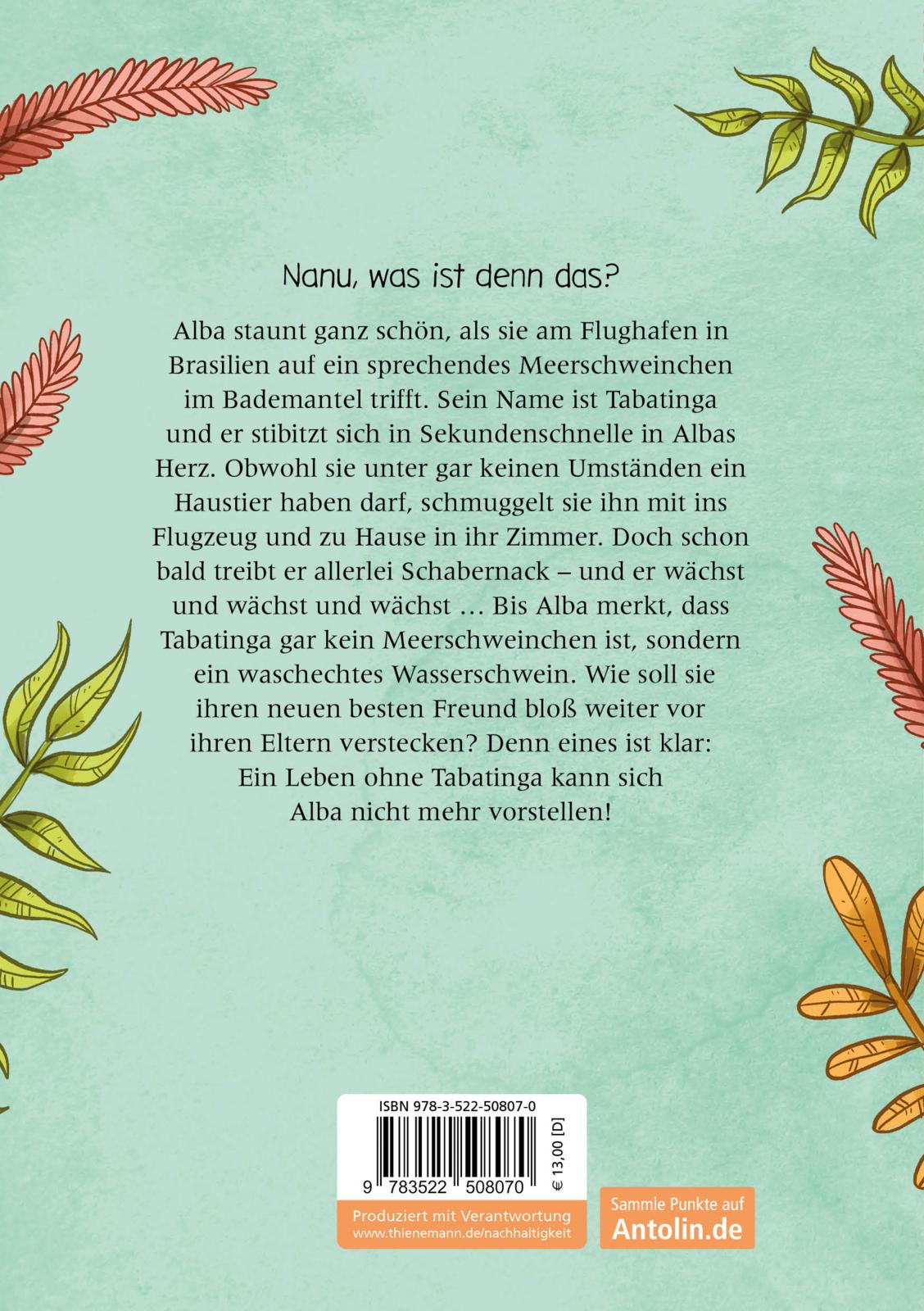 Nanu, was ist denn das? Alba staunt nicht schlecht, als sie am Flughafen in Brasilien auf ein kleines sprechendes Meerschweinchen im Bademantel trifft. Sie findet das kleine Schweinchen namens Tabatinga supersüß. Leider darf sie unter gar keinen Umständen ein Haustier haben! Schon gar nicht jetzt, wo Papa nach seinem Unfall im Rollstuhl sitzt. Aber Alba kann nicht widerstehen, denn Tabatinga stibitzt sich in Sekundenschnelle in ihr Herz. Heimlich schmuggelt sie ihn mit ins Flugzeug und versteckt ihn in ihrem Zimmer. Dort treibt er jedoch allerlei Schabernack - und er wächst und wächst und wächst ... Ist Tabatinga etwa gar kein Meerschweinchen? Und wie soll sie ihren neuen besten Freund bloß weiter vor ihren Eltern verstecken? Denn eines ist klar: Ein Leben ohne Tabatinga kann sich Alba nicht mehr vorstellen!