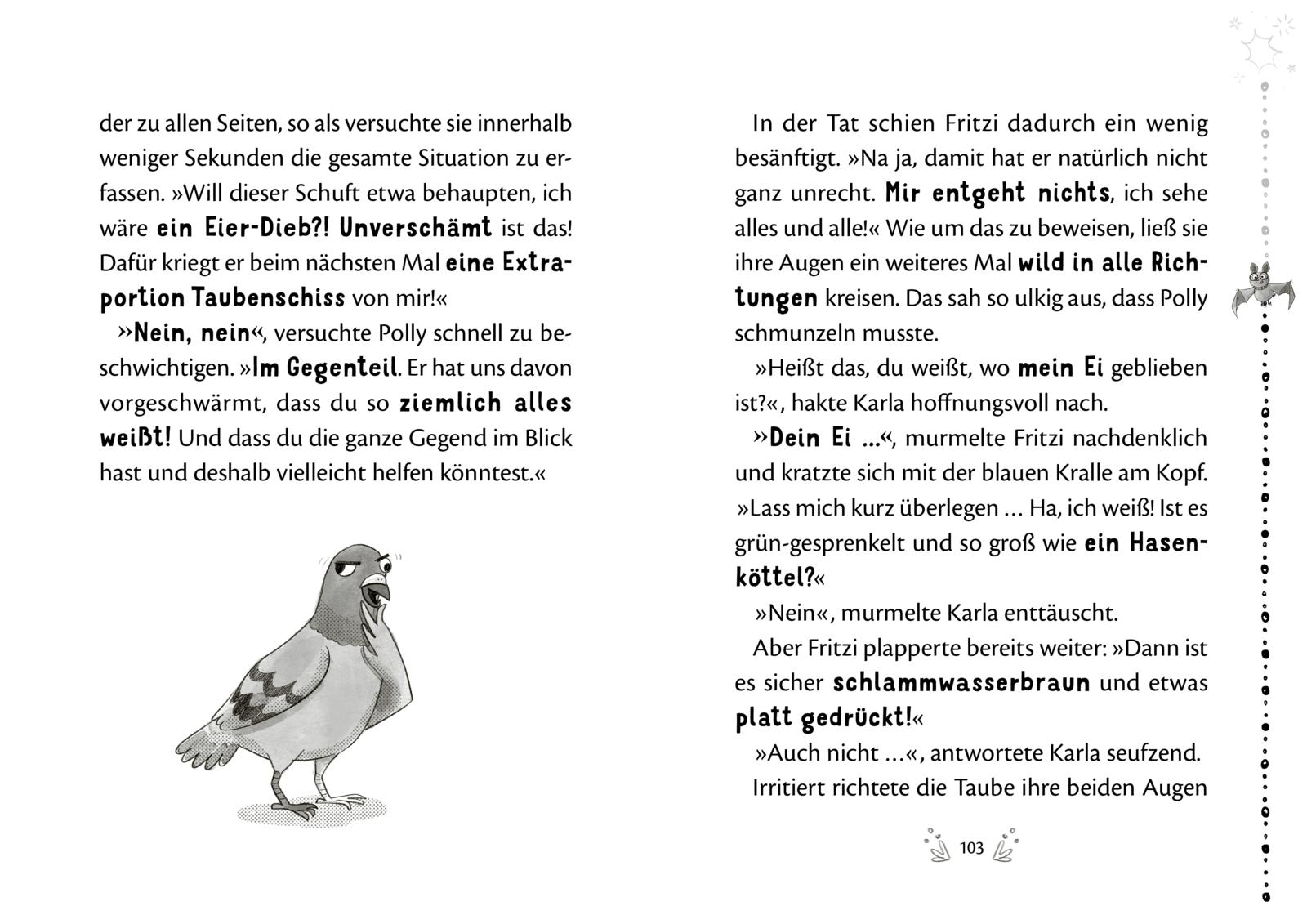 Potzblitz! Als Schildkröte Carla in Pollys und Adlerauges Bauwagen auftaucht, steht für die beiden Tierdetektive sofort fest: Sie werden Carla helfen, ihr geliebtes Ei wiederzufinden! Doch bei ihren Ermittlungen stehen sie schnell vor einem Problem: Wie verhört man eine Ameisenkolonie oder einen Maulwurf, wenn man dafür viel zu groß ist? Polly schlüpft kurzerhand in Tante Winnies "Schrumpfhosen". Plötzlich ist die Welt riesig - aber Carlas Problem leider nicht kleiner. Gelingt es Adlerauge und Polly, der kleinen Schildkröte das zu verschaffen, was sie sich am allermeisten wünscht?