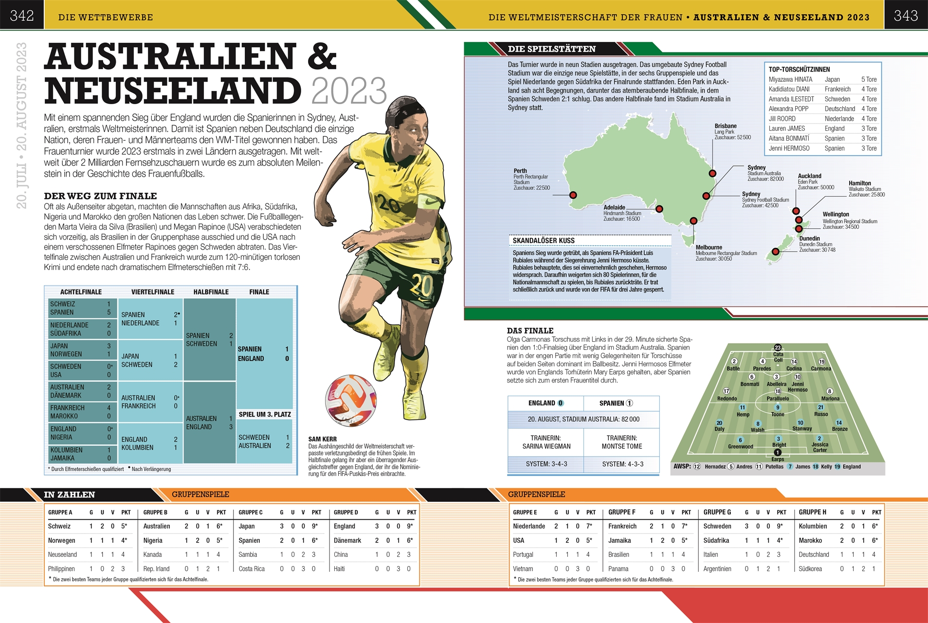 - mit Sonderseiten zu begehrten Trophäen und berühmten Fußball-Stadien