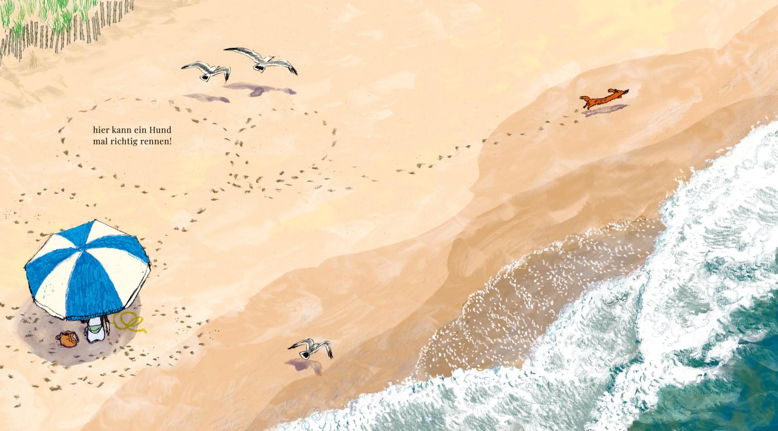 Was gibt es Schöneres, als an einem brüllend heißen Tag in der Stadt raus ans Meer zu fahren? Auf freche und eigensinnige Art und Weise lässt der kleine Dackel uns einen unvergleichlichen Sommertag erleben, der erfrischender nicht sein könnte. Er drängt an den Strand und fordert zum Spiel heraus. So ausgelassen und frei, dass es eine Freude ist.