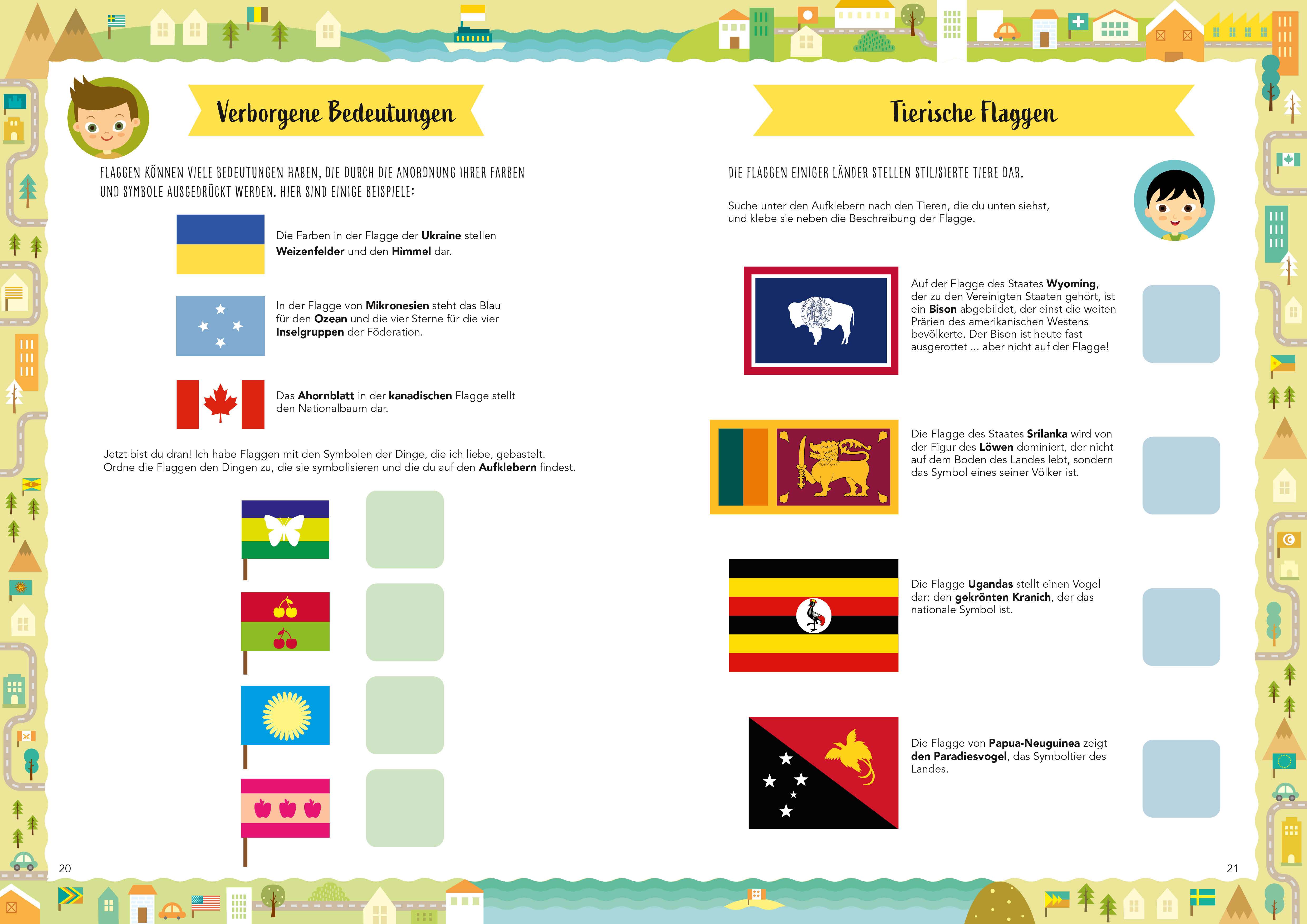 Eine Flagge ist nicht nur ein Stück Stoff mit Zeichen darauf wie Streifen, Tiere, Rauten, Monde ... eine Flagge steht auch für die Kultur und Geschichte eines Landes. Die Farben- und Formenvielfalt ist groß. Begleite die Freunde Gea, Tom und Ben durch diese bunte Welt. In diesem Aktivitätsbuch entdeckst du ihre Anfänge in der Ritterzeit, lernst alles über Symbolik, Botschaft und Verwendung. Du entdeckst jede Menge knifflige Spiele und Aufgaben rund um Flaggen, Banner und Fahnen: ein Flaggen-Sudoku, das Flaggen-Alphabet, um mit Schiffen auf See zu kommunizieren, und natürlich die fünf Gestaltungsprinzipien, mit deren Hilfe du richtige Flaggen selbst gestaltest.