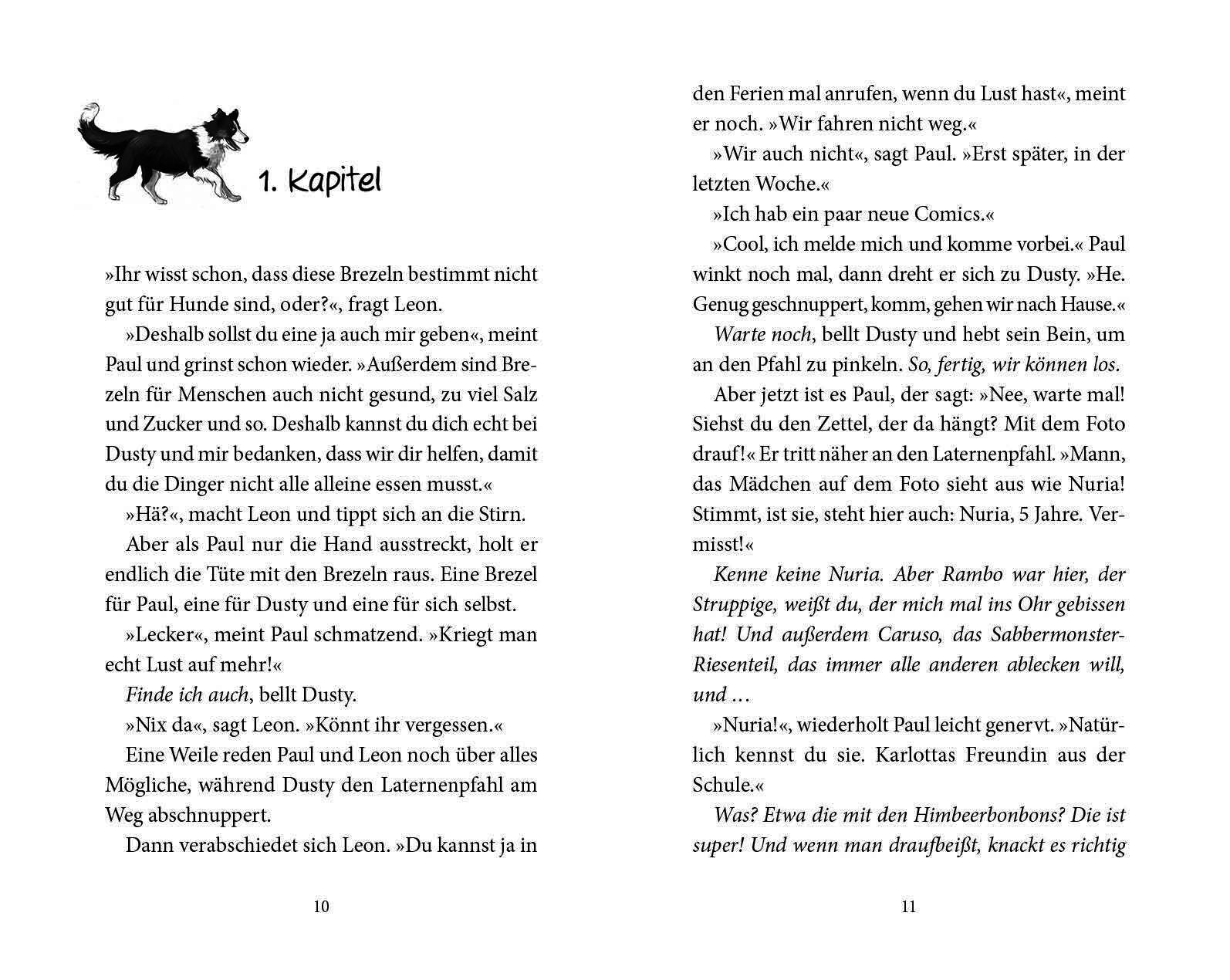 Als Karlottas Freundin Nuria nach einer Geburtstagsfeier auf dem Waldspielplatz nicht nach Hause kommt, steht für Paul fest: Er muss mit Dusty nach dem vermissten Mädchen suchen. Aber selbst Superspürnase Dusty findet zunächst keine Spur von Nuria. Die Polizei hat einen schlimmen Verdacht: Das Mädchen könnte in ein Auto gestiegen und entführt worden sein. Paul und seine Freundin Alex glauben nicht an diese Theorie. So etwas würde Nuria nie tun! Doch wie lange haben sie noch Zeit, um das Mädchen im Wald zu finden? Denn in direkter Nachbarschaft liegt das gefährliche Nebelmoor ...