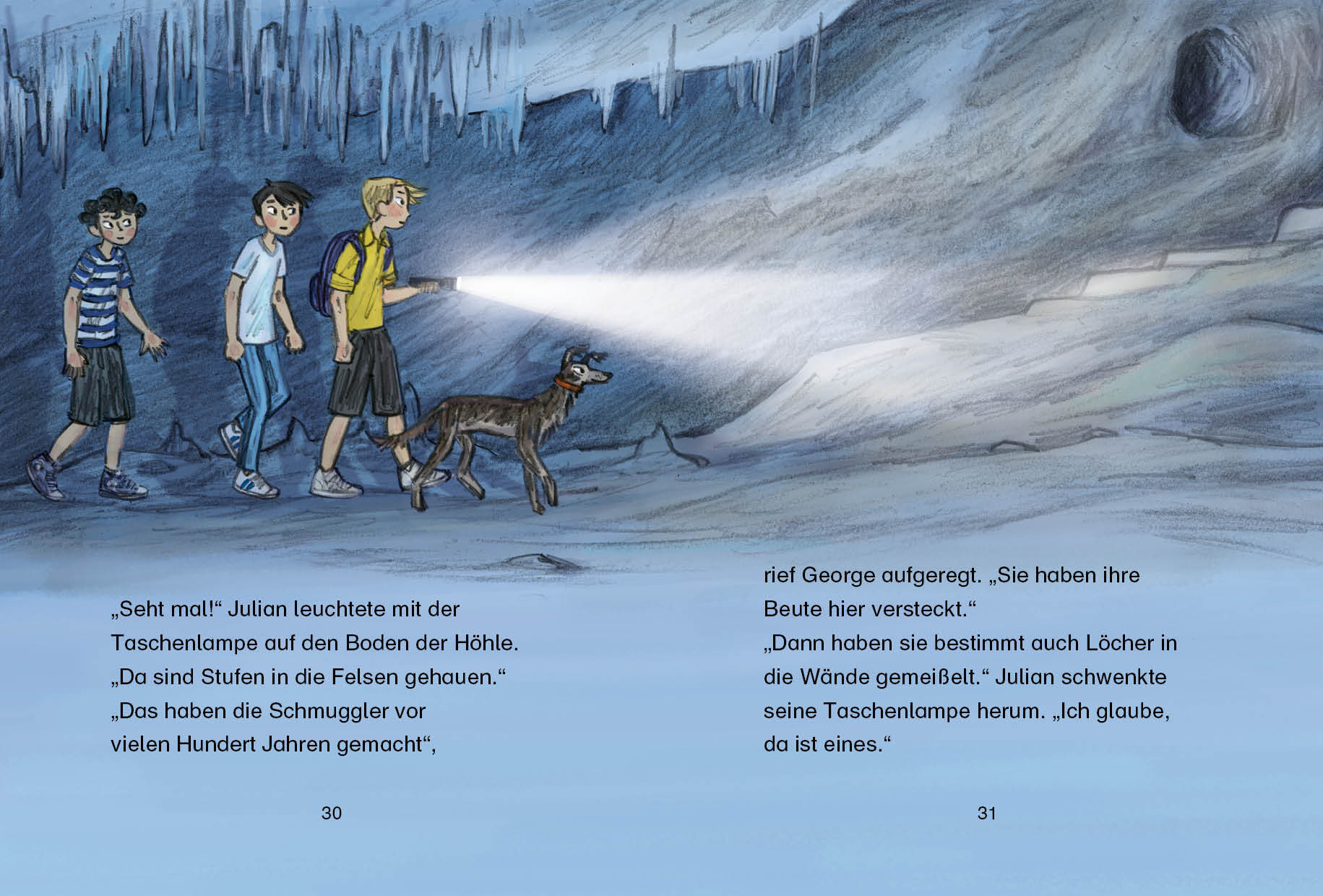 Die Fünf Freunde entdecken eine Flaschenpost! Sie enthält eine sehr geheimnisvolle Botschaft: Jemand vermisst eine Puppe, und angeblich liegt sie versteckt in einer Höhle auf der Felseninsel. Keine Frage: Anne, George, Dick, Julian und ihr treuer Hund Timmy machen sich sofort auf die Suche nach dem verzweifelt gesuchten Spielzeug! Doch in der Höhle ist es so dunkel, dass die Kinder sich schnell verlaufen. Ein Glück, dass Timmy so eine feine Spürnase hat ...Die spannenden Fünf-Freunde-Abenteuer sind mit großer Schrift und abwechslunsgreichem Layout ideal für den Lesestart ab 7 Jahren. Viele farbige Bilder animieren Kinder, den Text für sich zu entdecken - so macht Lesen lernen mit den Fünf Freunden noch mehr Spaß.