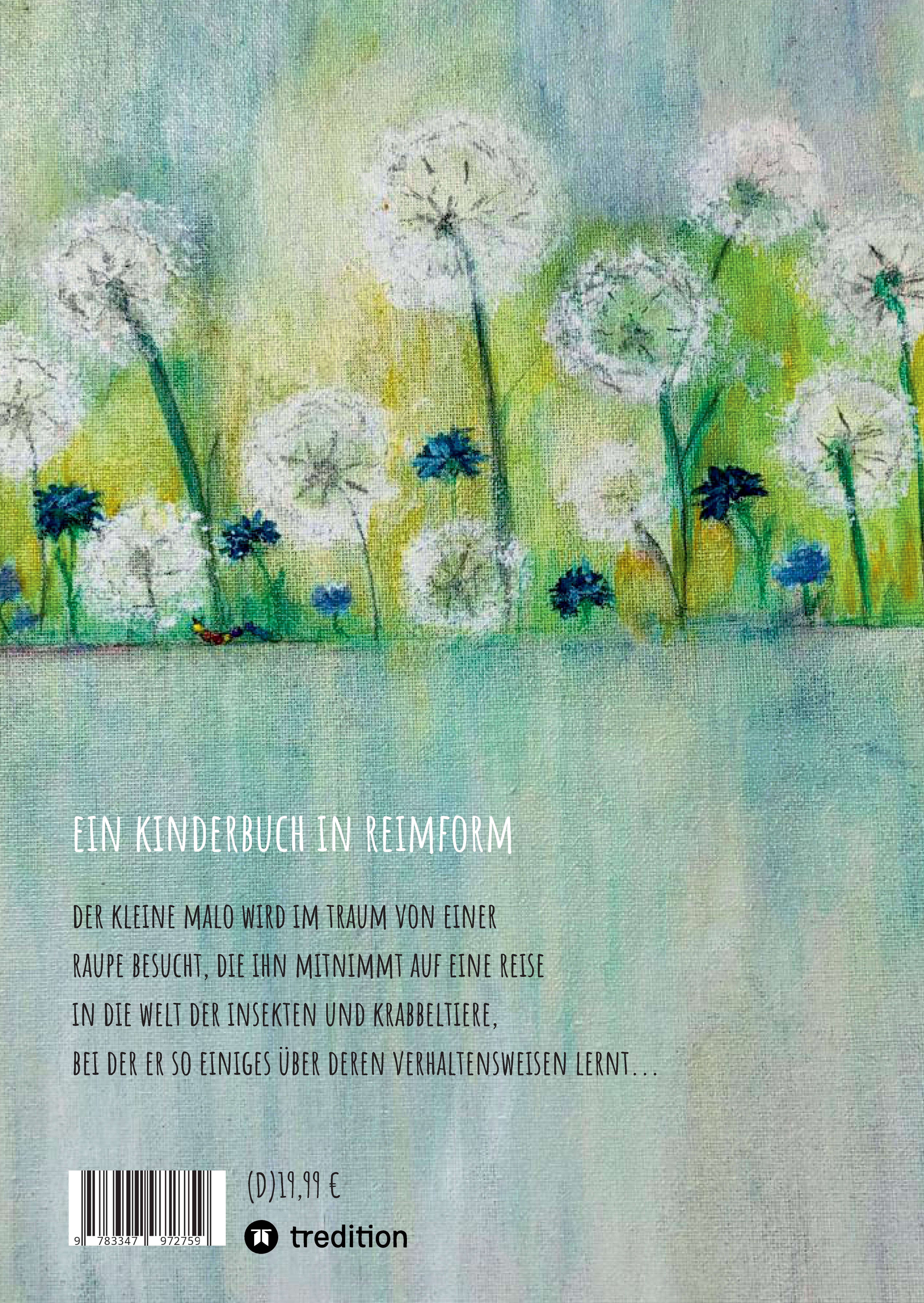 Ein Kinderbuch in Reimform.Der kleine Malo wird im Traum von einerRaupe besucht, die ihn mitnimmt auf eine Reisein die Welt der Insekten und Krabbeltiere,bei der er so einiges über deren Verhaltensweisen lernt...