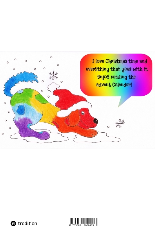 Advent in Fairytale land is an Advent calendar for reading and reading aloud, suitable for children aged 3 and over. The story shows that friendship helps to overcome even borders and walls in order to open a door. A group of friends (Cino, the rainbow dog, the red cat and many more) shorten the pre-Christmas period with winter activities such as ice skating, baking biscuits and putting on a play. Traditions such as the saints (St Nicholas & Barbara), Advent wreath making and writing wish lists to the "Christkind" also play a major role in this story.