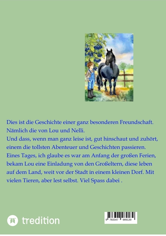 In dieser Geschichte geht es um die ersten Schritte ans Pferd für Kinder. Kindgerecht und informativ, sowie humorvoll als Dialog mit Nelli, einem besonderen Pferd, erzählt.