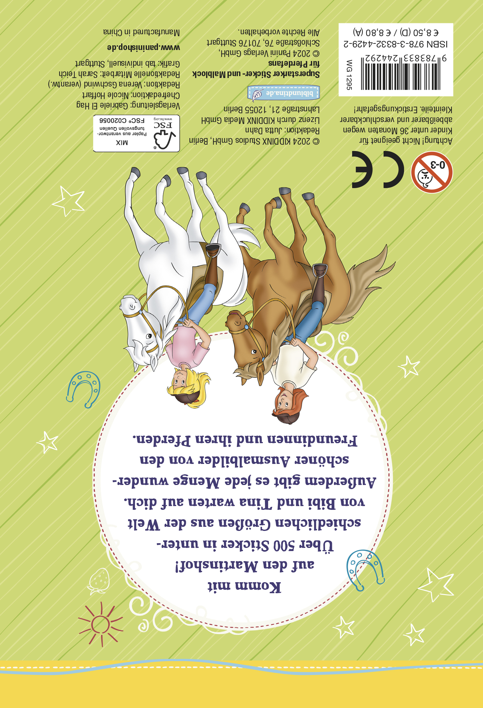 Komm mit auf den Martinshof! Über 500 Sticker in unterschiedlichen Größen aus der Welt von Bibi und Tina warten auf dich. Außerdem gibt es jede Menge wunderschöner Ausmalbilder von den Freundinnen und ihren Pferden!
