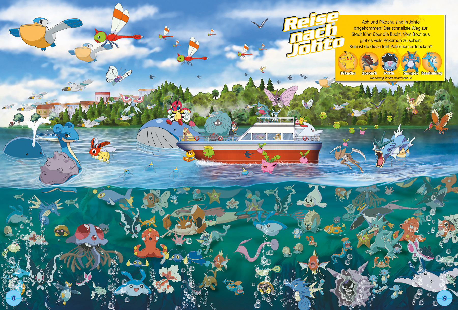 Kannst du Pikachu entdecken? Reise mit bunten Wimmel-Suchbildern durch die Welt der Pokémon und halte Ausschau nach dem gelben Maus-Pokémon und seinen Freunden. Ein aufregender Suchspaß für kleine und große Pokémon-Trainer.