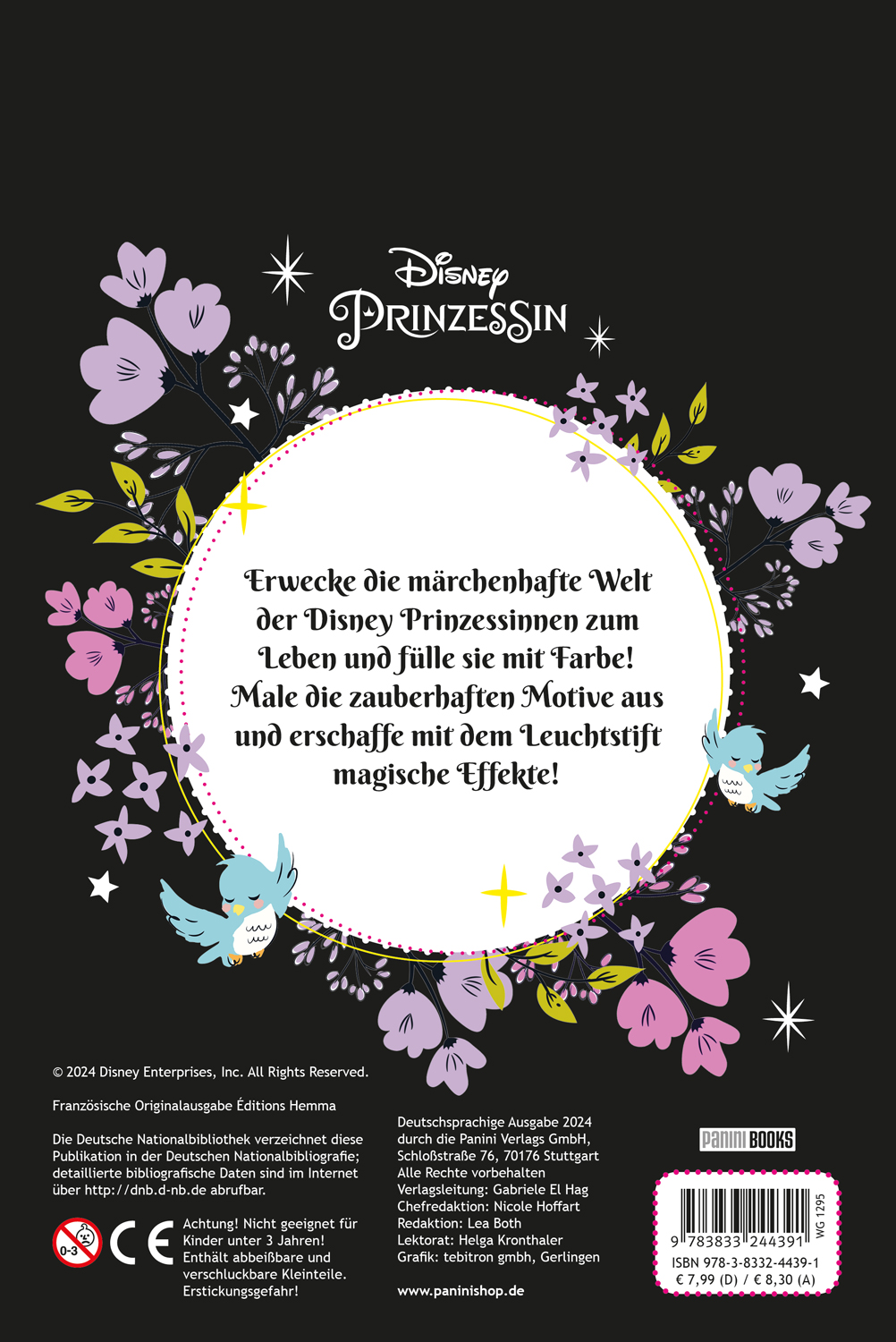 Erwecke die märchenhafte Welt der Disney Prinzessinnen zum Leben und fülle sie mit Farbe! Male die zauberhaften Motive aus und erschaffe mit dem Leuchtstift magische Effekte!