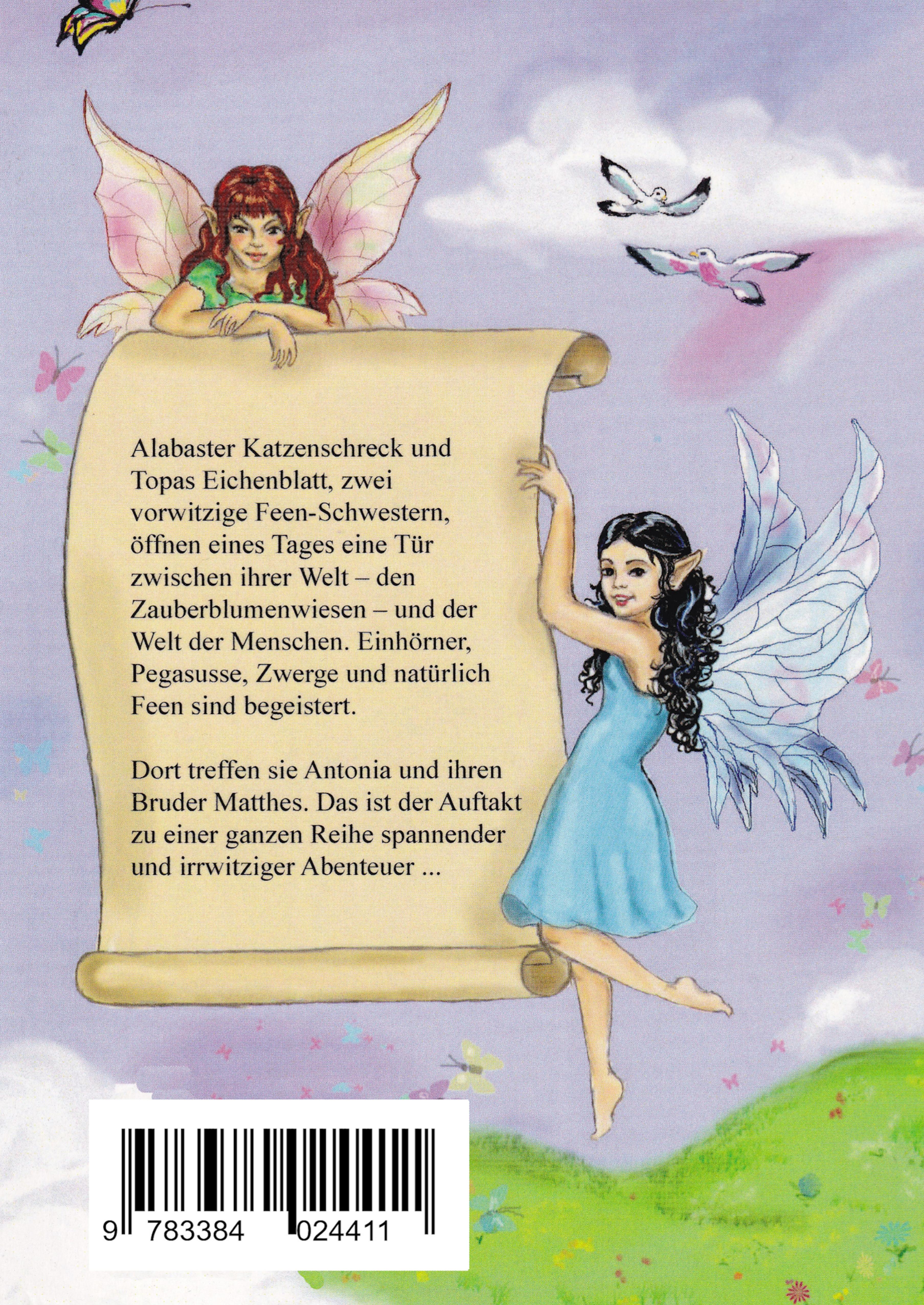 "Tauchen Sie ein in die magische Welt der Zauberblumenwiesen, in der die abenteuerlustigen Feen-Schwestern Alabaster Katzenschreck und Topas Eichenblatt eine Tür zur Menschenwelt öffnen. Einhörner, Pegasusse, Zwerge und Feen jubeln, doch die Magier sind besorgt. In der Menschenwelt begegnen sie Antonia und Matthes, zwei Kinder, die alles riskieren, um die Zauberblumenwiesen zu besuchen. Doch Gefahren lauern, von einem Minotaurus bis zu hinterlistigen Zwergen. Erleben Sie ein zauberhaftes Abenteuer voller Magie und Freundschaft in diesem bezaubernden Buch."