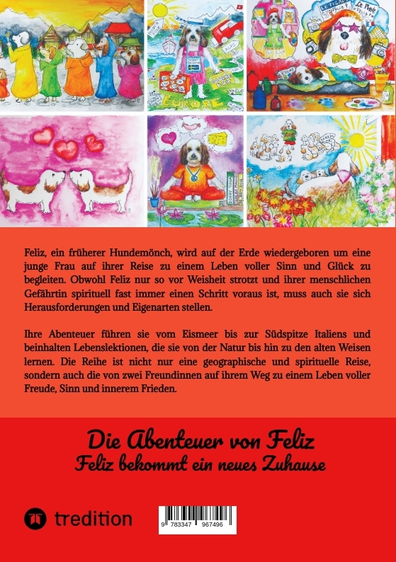 Feliz, ein früherer Hundemönch, wird auf der Erde wiedergeboren um eine junge Frau auf ihrer Reise zu einem Leben voller Sinn und Glück zu begleiten. Obwohl Feliz nur so vor Weisheit strotzt und ihrer menschlichen Gefährtin spirituell fast immer einen Schritt voraus ist, muss auch sie sich Herausforderungen und Eigenarten stellen. Ihre Abenteuer führen sie vom Eismeer bis zur Südspitze Italiens und beinhalten Lebenslektionen, die sie von der Natur bis hin zu den alten Weisen lernen. Die Reihe ist nicht nur eine geographische und spirituelle Reise, sondern auch die von zwei Freundinnen auf ihrem Weg zu einem Leben voller Freude, Sinn und innerem Frieden.